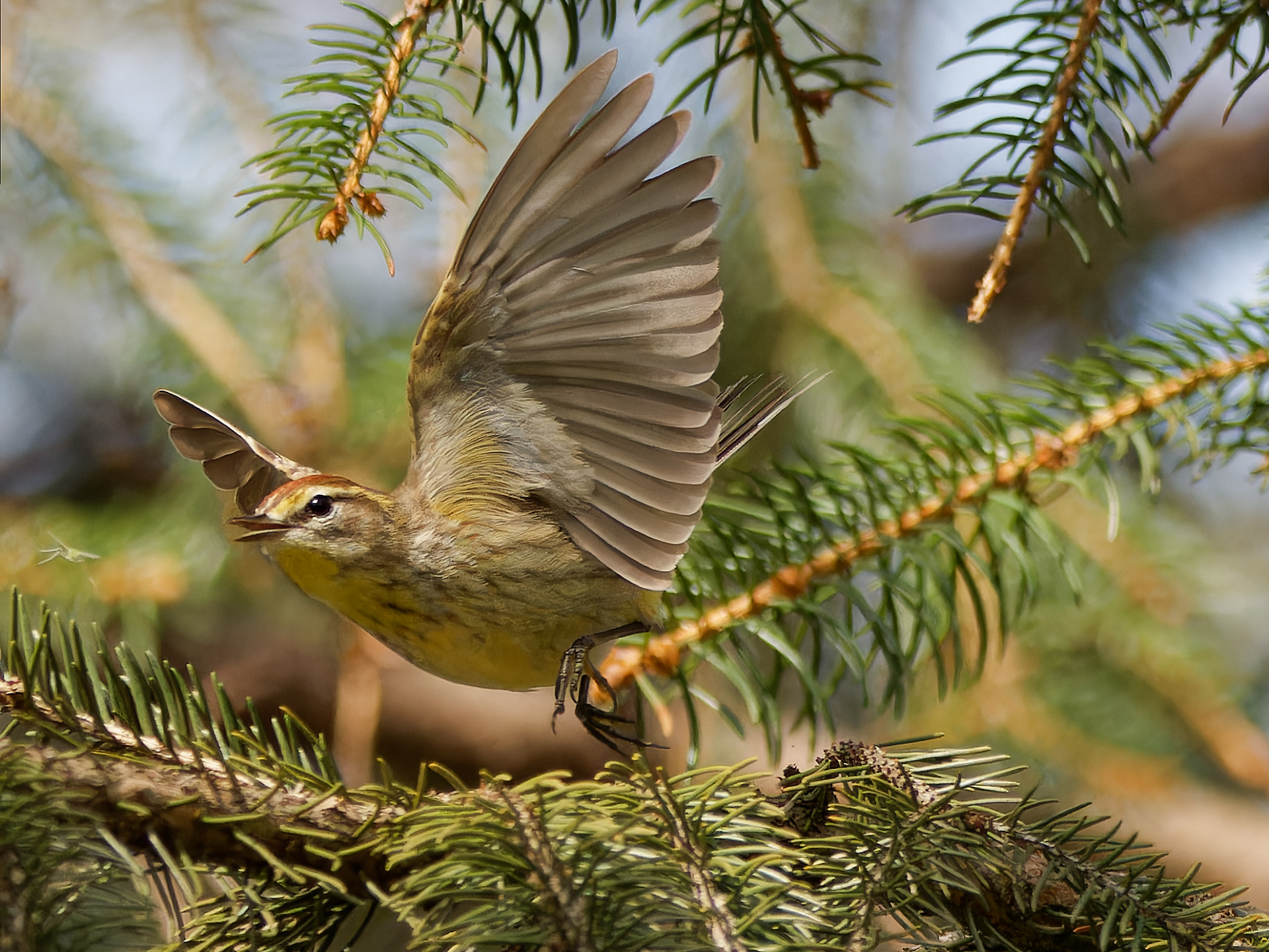 Thanks Sandy. That was a lucky catch. The warbler was doing a lot of flitting around and I had trouble getting the camera pointed at it and focused before it was gone. I don't know what gear you are using, but the OM-1 helps immensely. Without it I'd be unlikely to get much of anything in flight. People who are doing that with older gear are much more talented than I. Even so, I'm throwing away 100's of frames for each one I post. Birds are tricky. I guess the challenge has ignited me.