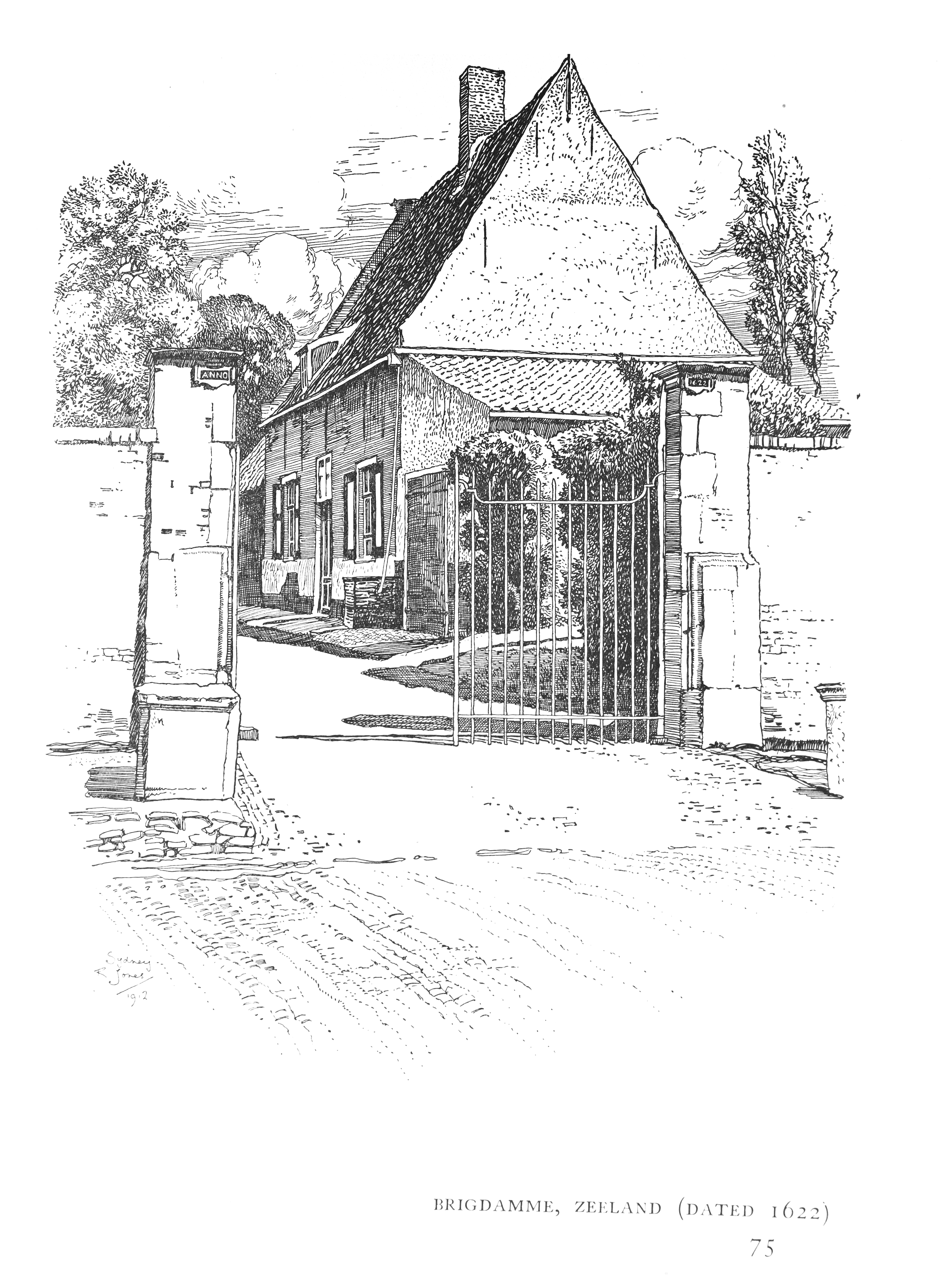 The drawing is from the book "Old Houses in Holland" by Sydney R Jones, published in 1913. He specialised in drawings of houses and towns, and published several good books, including a useful little manual, "How to Draw Houses".