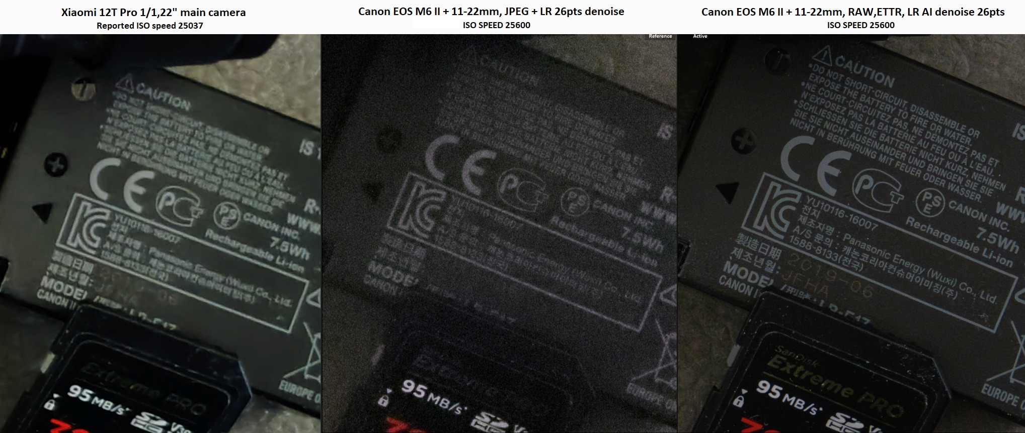 Here is detail comparison between my large sensor phone camera output (three major quality issues even for FullHD output), In-camera JPG output with slight LR denoise, and fully "managed and processed" .