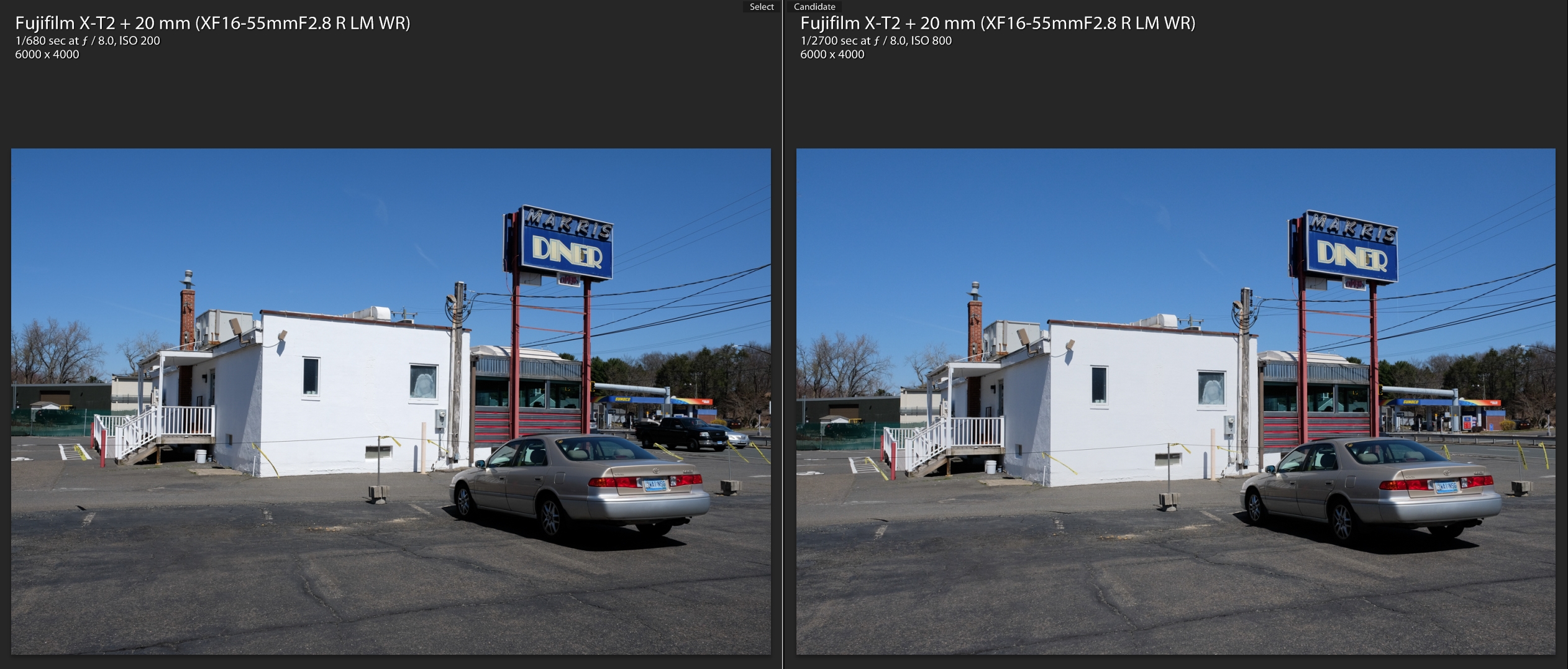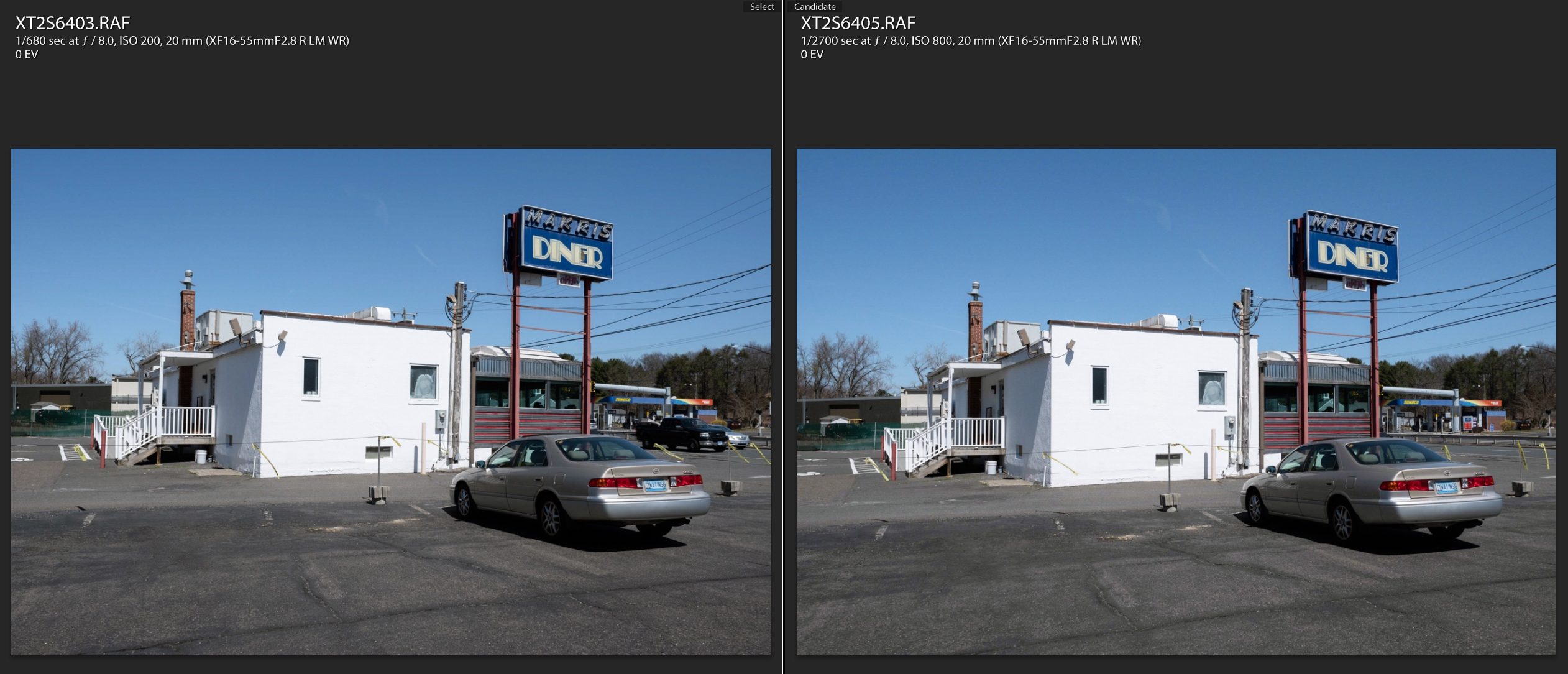 But what does that mean in the real world? Well, in this case it shows that while the resulting images look similar at first glance, there is a price to pay for a sub-optimal exposure, pretty easily seen here upon closer inspection...