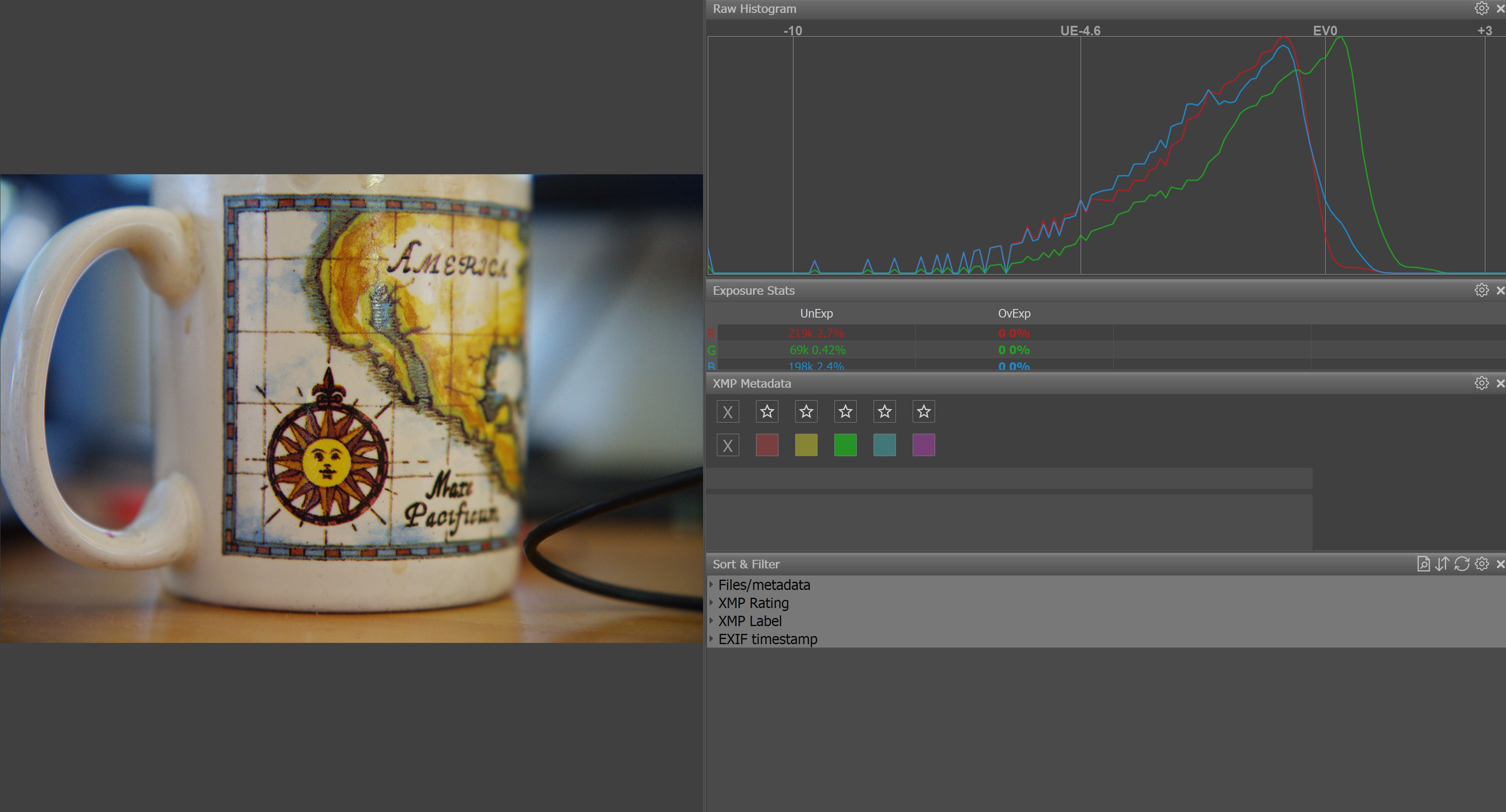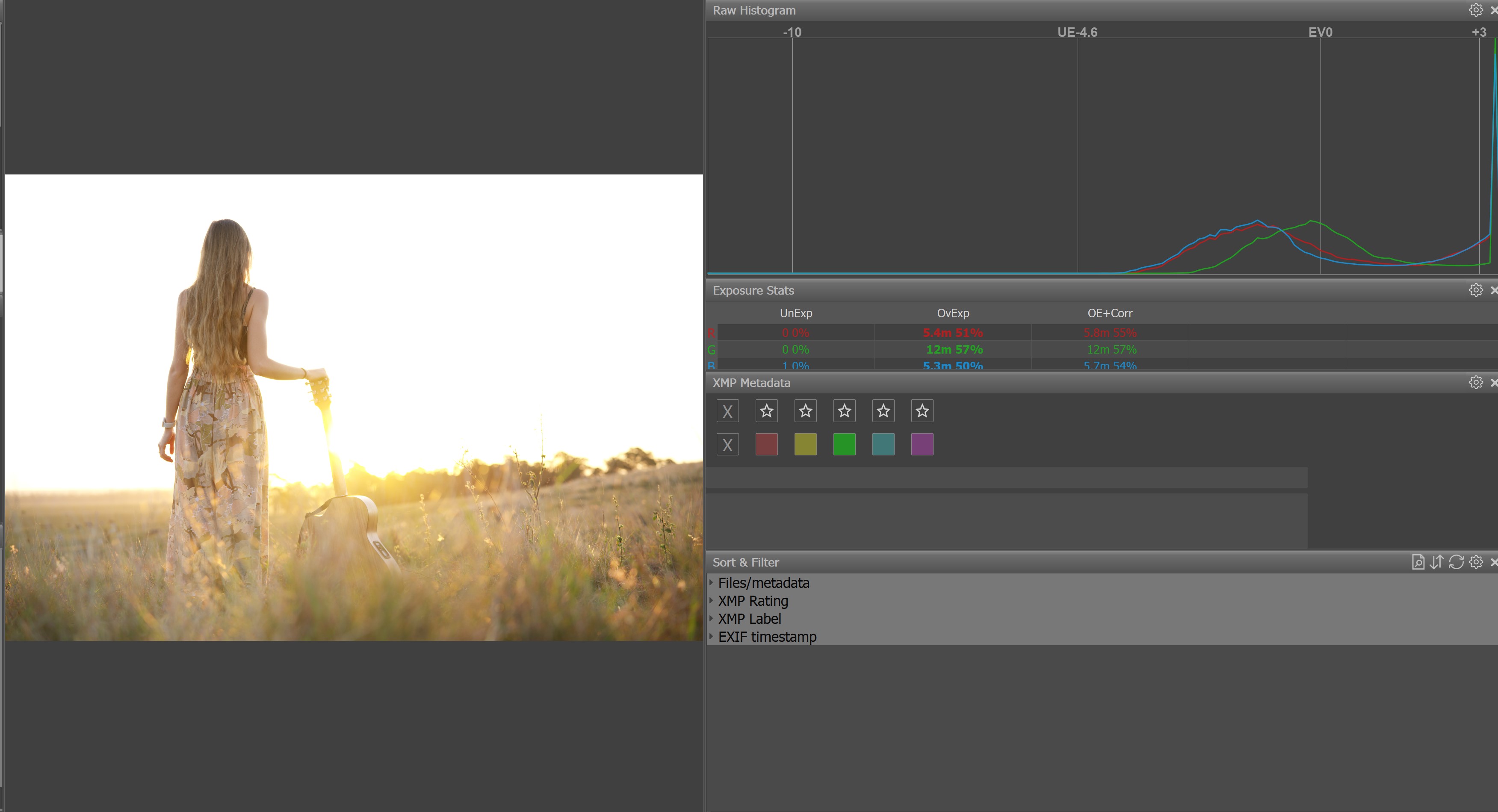Here the exposure was selected as to not clip the spectral highlights for processing