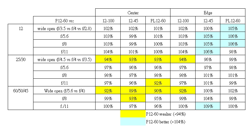 My analysis on 12-60 vs PL12-60, O12-100 & O12-45 is as below: