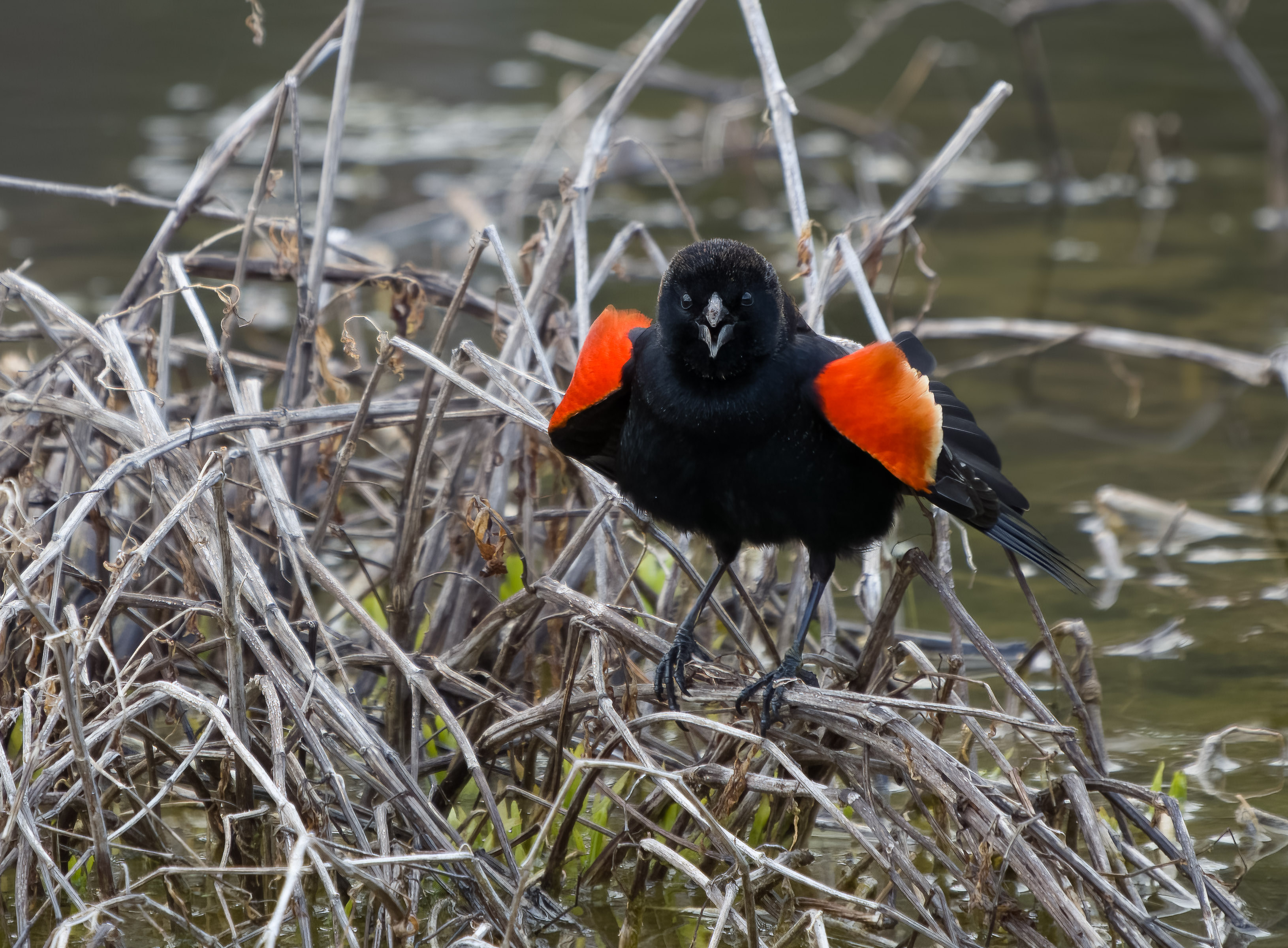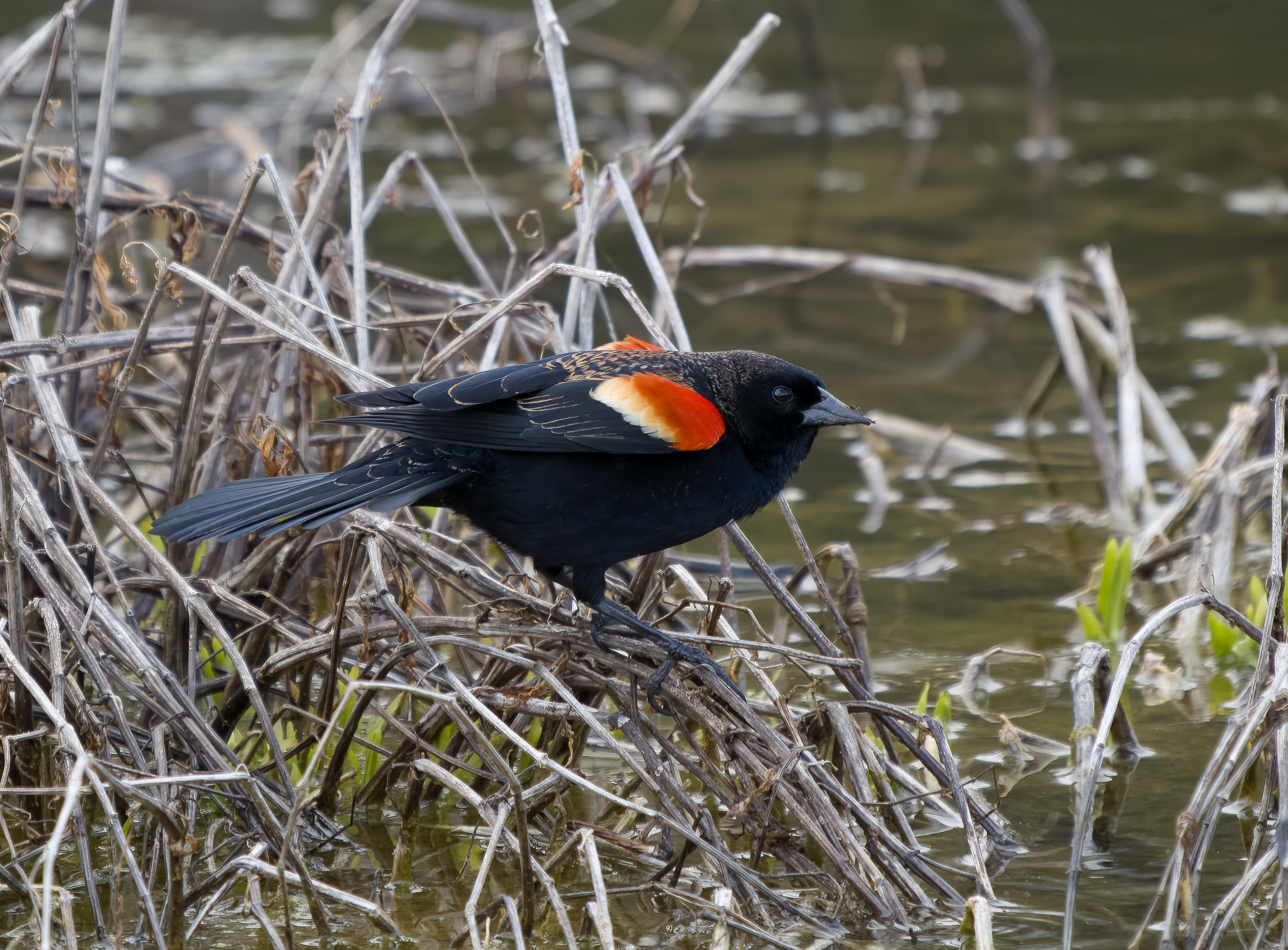 I captured these pictures of a red-winged blackbird this morning. I am a newbie at bird photography, but slowly learning.