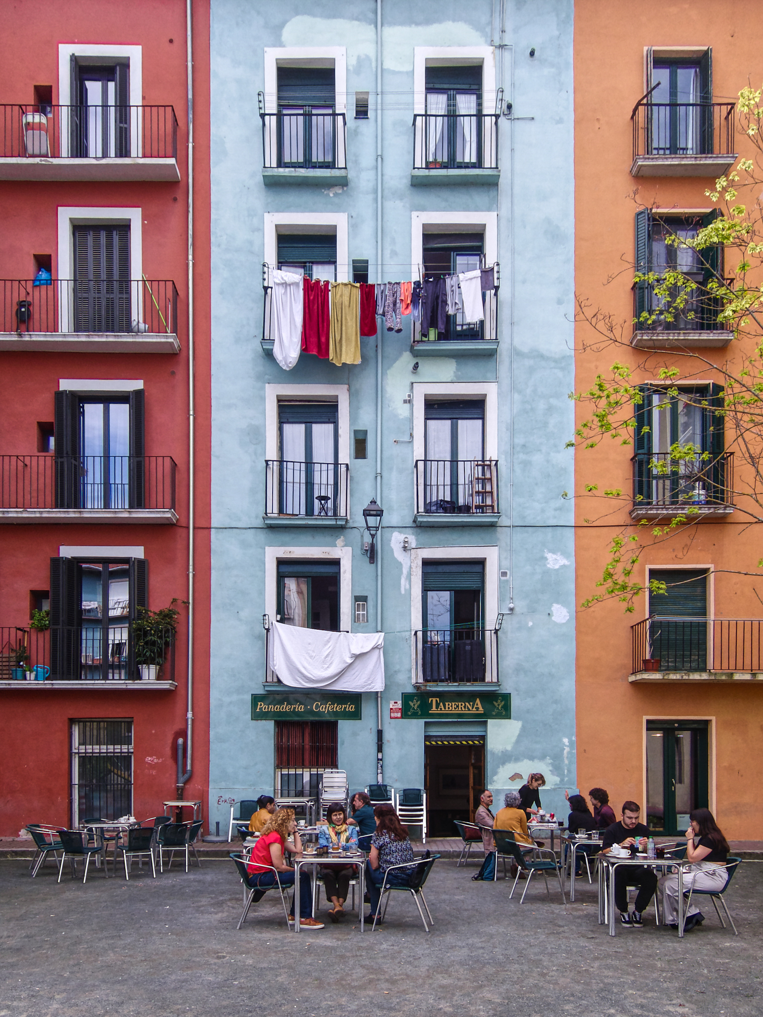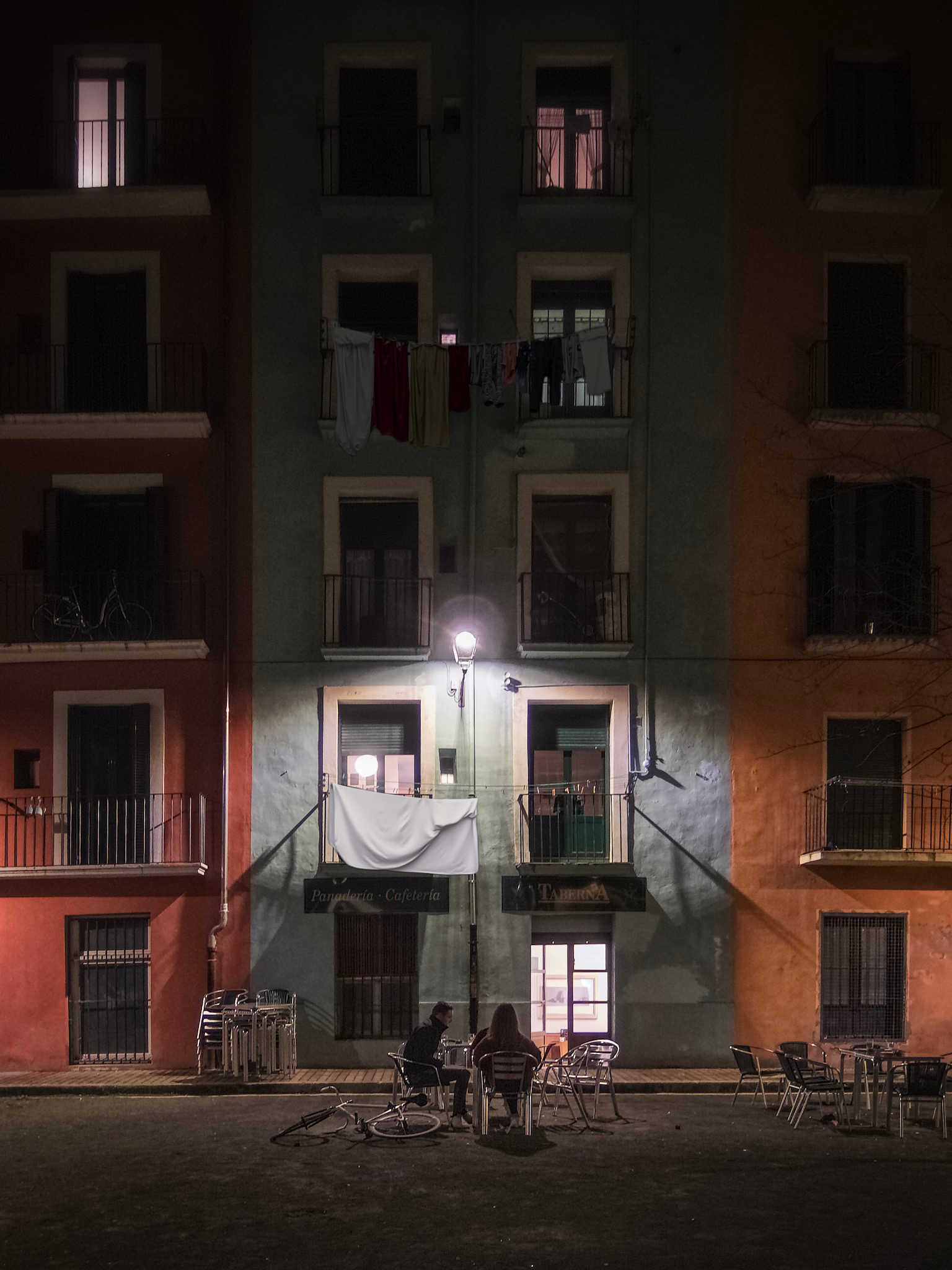 Your work is terrific. This one hits for me (mostly) but misses for me too. Framing, colors, laundry….. they ALL work perfectly. But there are too many people down below (for me). The one table to the right with two people at it would have been PERFECT. You should have walked over and told everyone but them to leave … threatened them with violence if they didn’t depart. Then you would have had a killer shot and a hell of a story to tell too (while in jail).