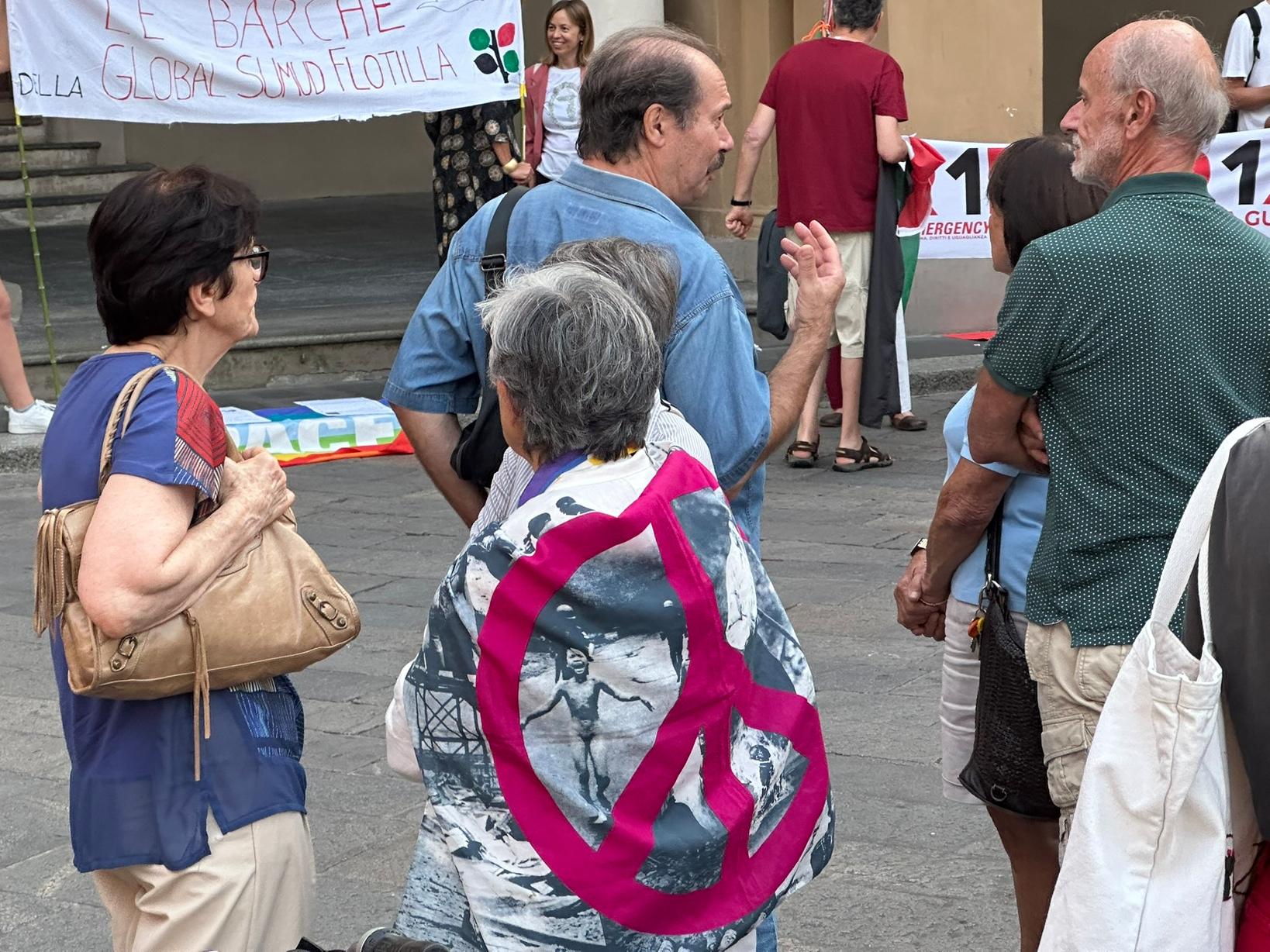 I came across these pensioners intent in reliving those formidable years of protest and violence of 68 and beyond. Any fashionable cause will do, to dig out the Ban the Bomb symbol and wave some flags, and feel young again.