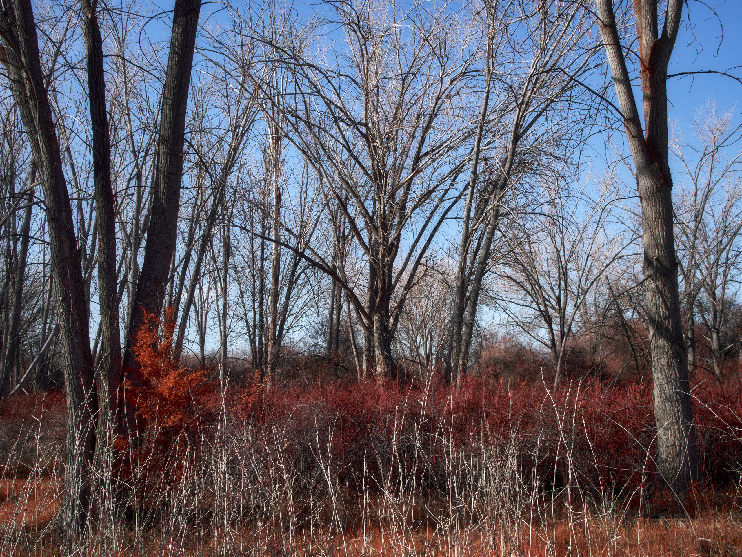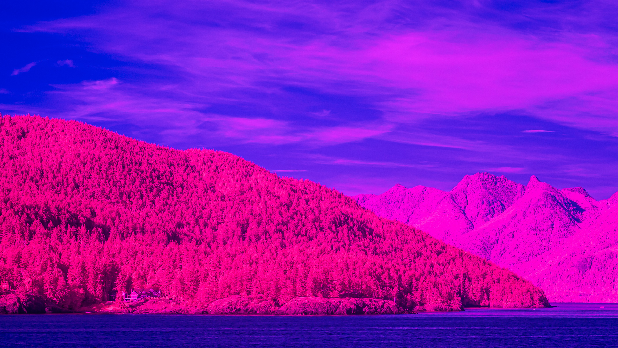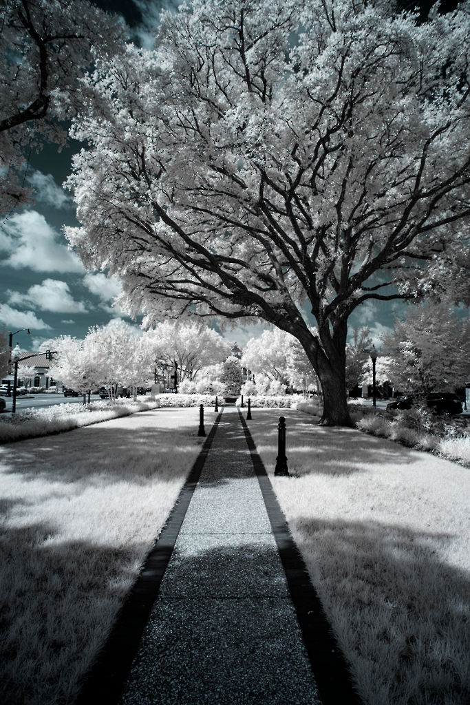 Another one from the archives. This was near the start of my exploration of false colour infrared and I used a dark orange filter on a full spectrum conversion. I wound up using dark red most of the time but the orange filter has some nice character too. Most post production in Lightroom with a channel swap and hue refinement in Photoshop.