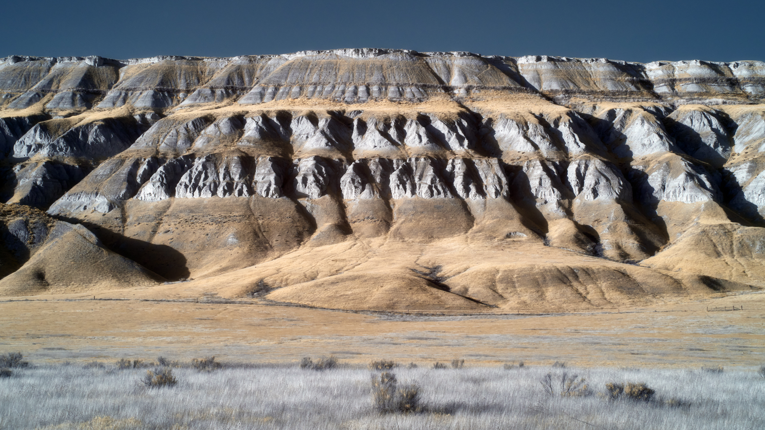 This reminds me of a recent trip to Horseshoe Canyon in Alberta, Canada. Full spectrum conversion, dark red (630nm) filter, most post production in LR with channel swap and hue refinement in PS.