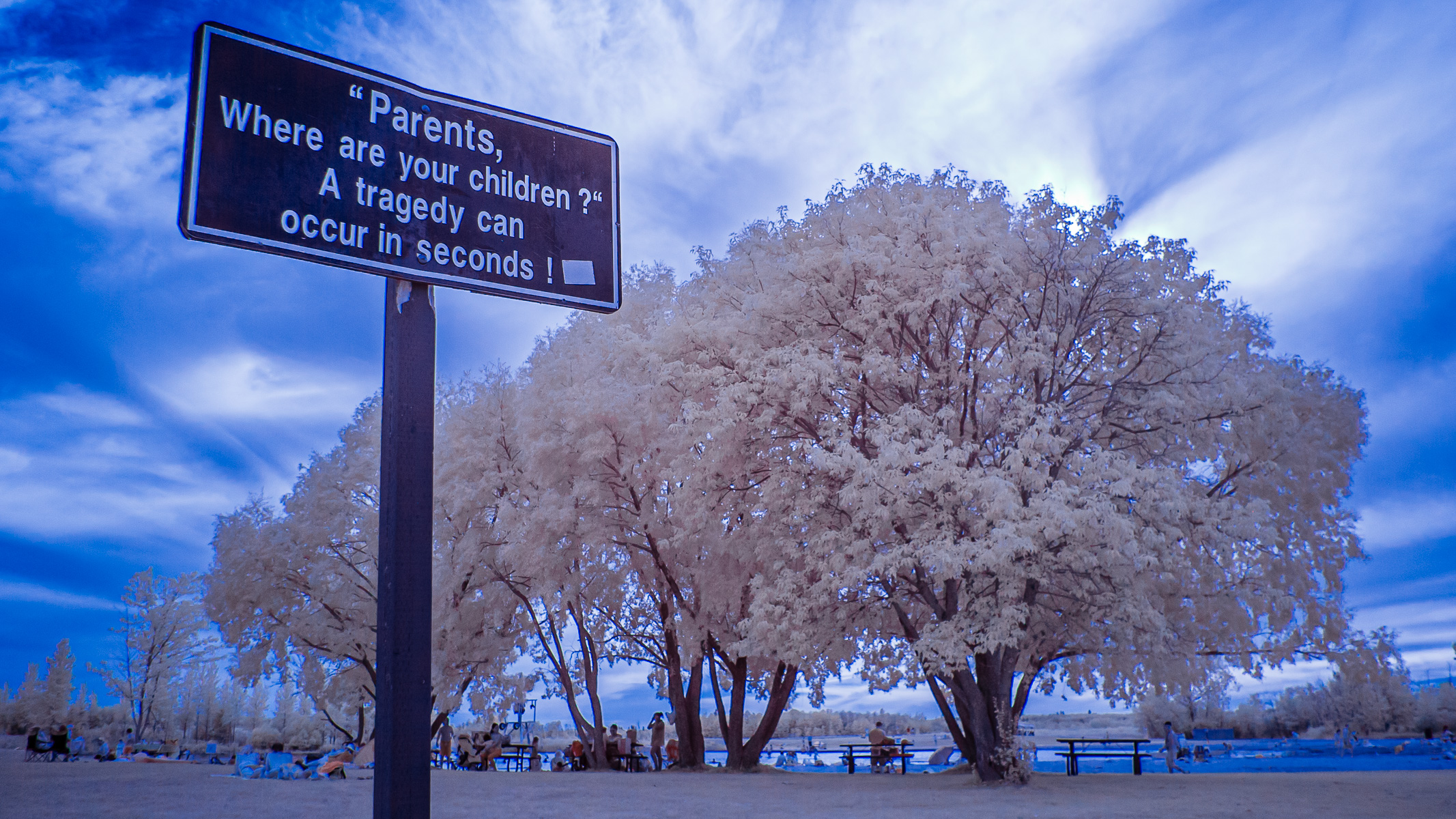 A cloudy beach day. Full spectrum camera with a B+W orange (550nm) filter, mix of Lightroom for most adjustments plus a stop in Photoshop for channel mixer and hue adjustments.