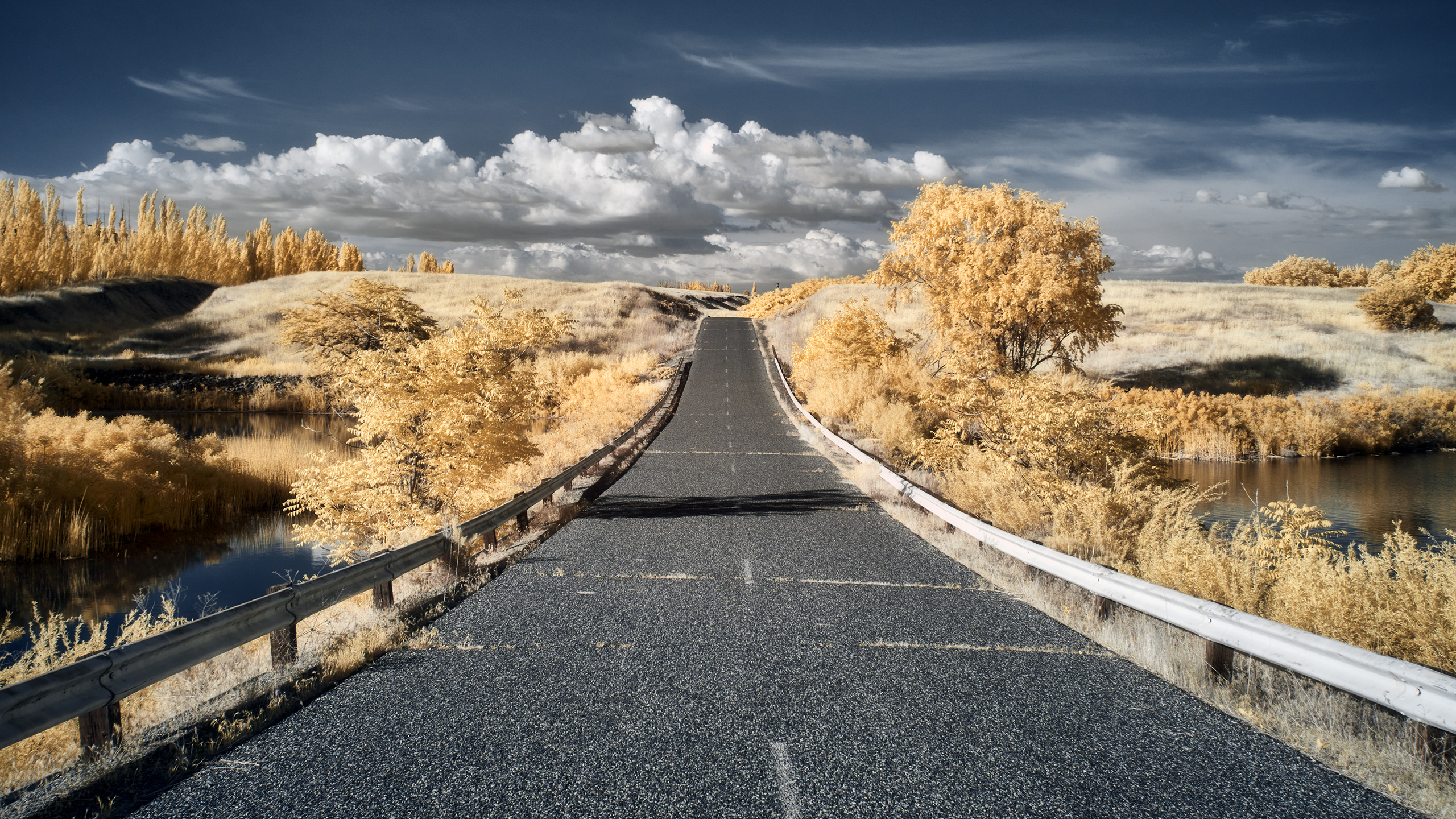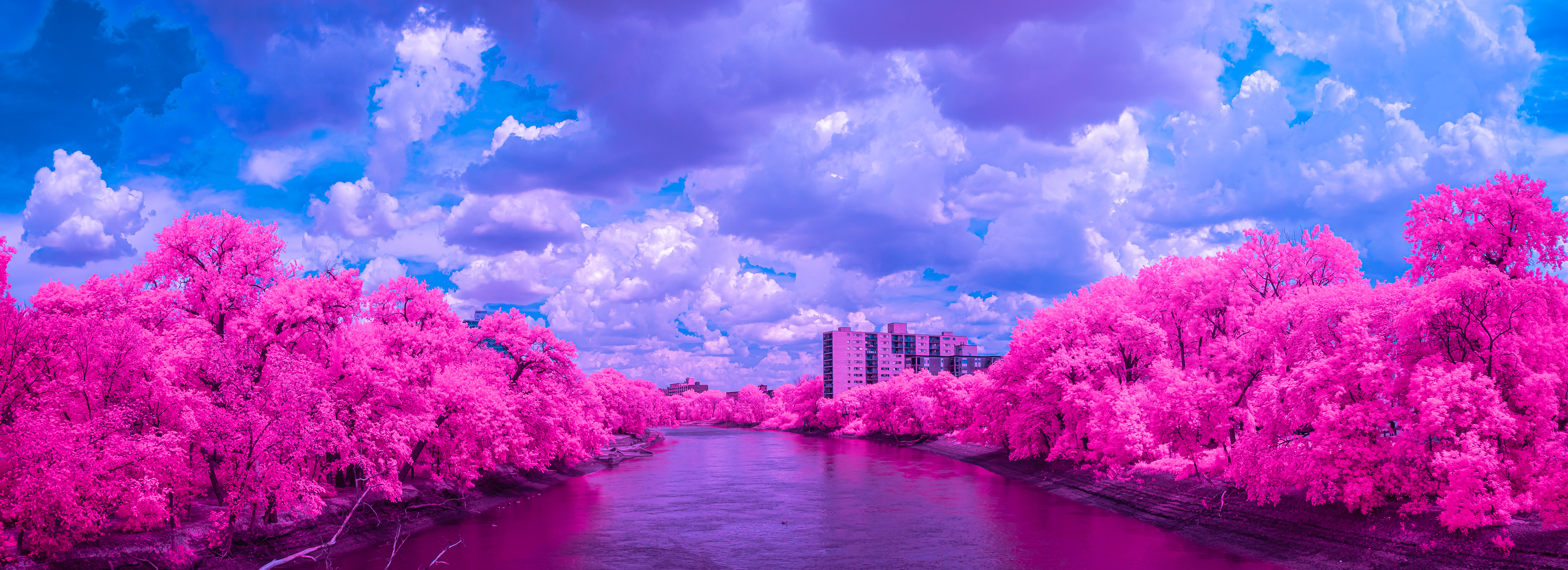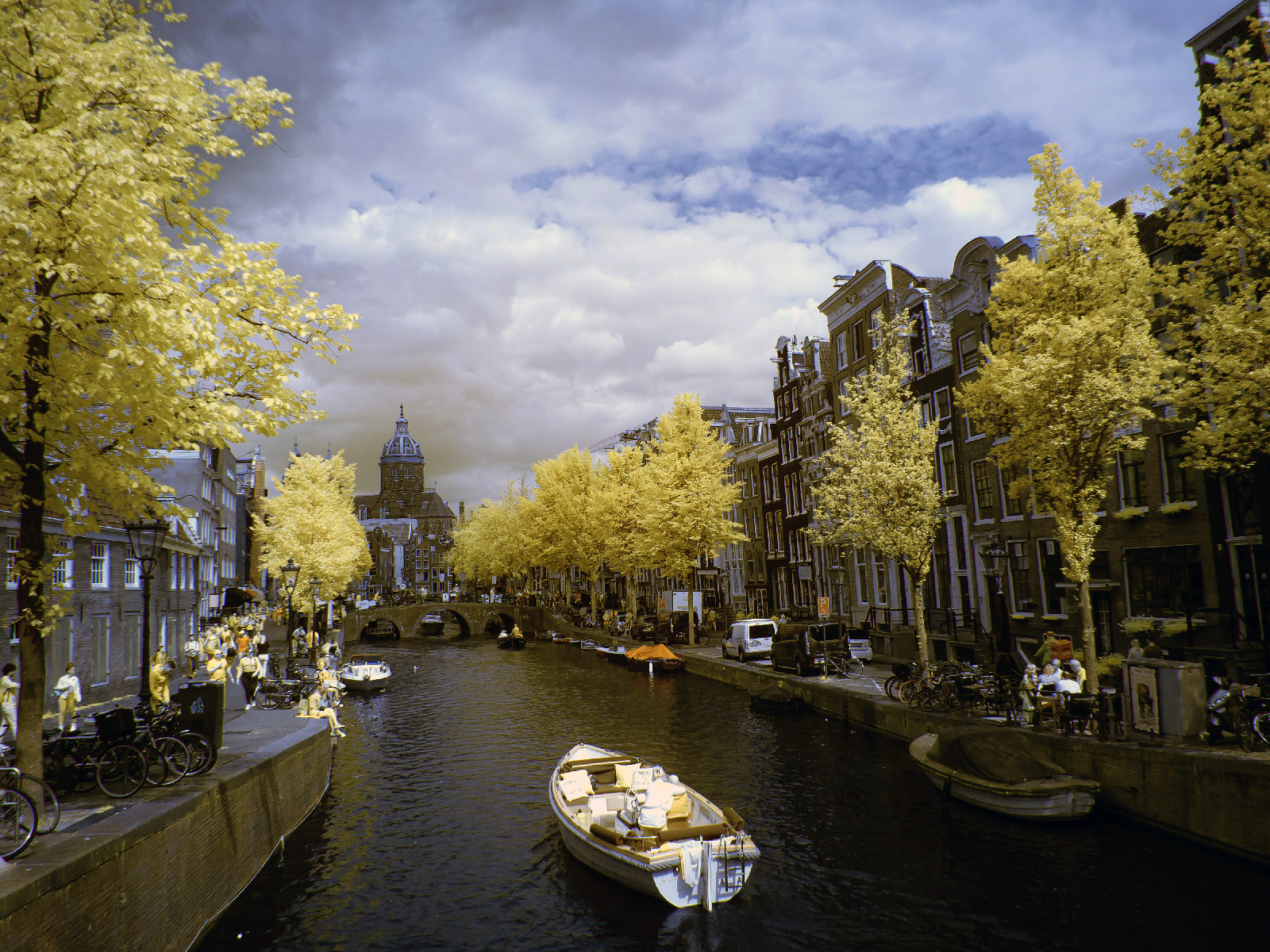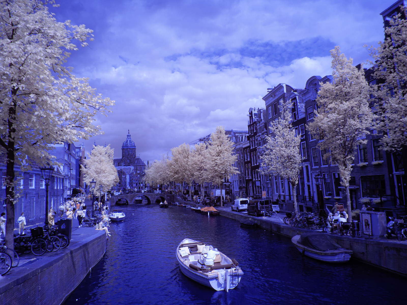 It's continuing to be cloudy/hazy these days, so here's another from the archives. Amsterdam with a full-spectrum conversion and a 630nm filter, post-processing in ACR and Photoshop for channel mixer and hue refinement.