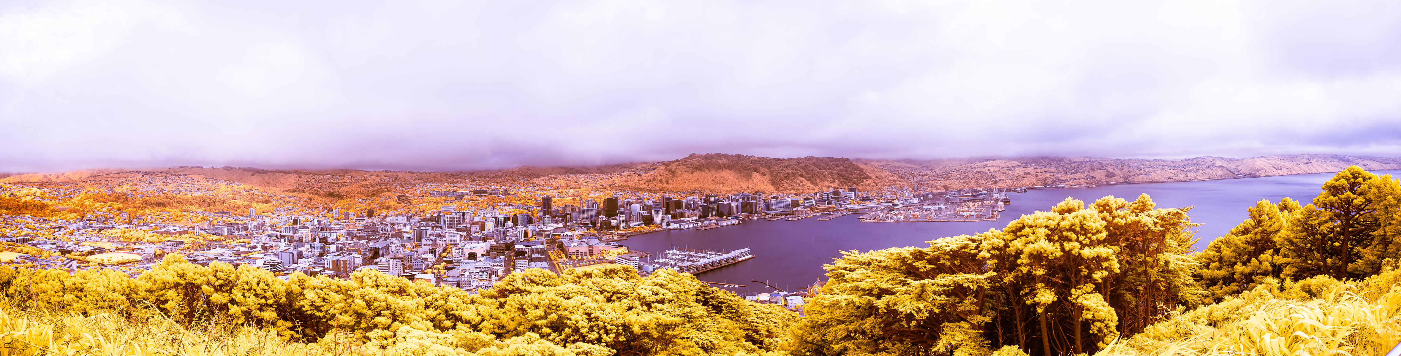 Wellington, New Zealand. Blue/IR filter on a full spectrum camera, 10 shot panorama stitch processed in Lightroom.