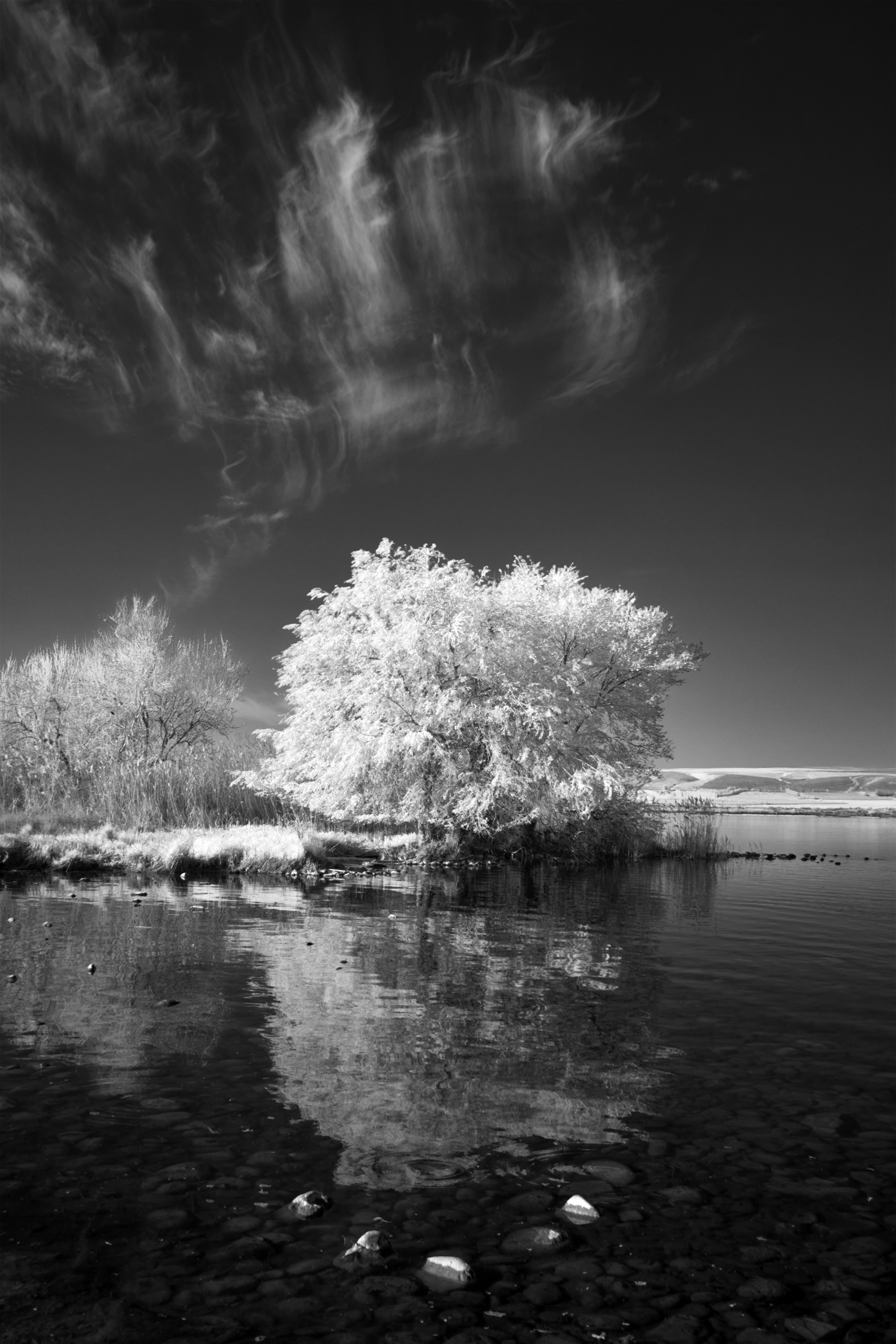 The assignment for this month's local camera club was to shoot a 'landscape' image but the exposure had to be 1 second or longer! I knew that my deepest, darkest IR filter, a 950 nm 67mm Neewer filter I got for $6 off eBay, would probably let me shoot at 1s if I stopped down, so inspired by this thread, I decided to shoot a landscape with that filter.
