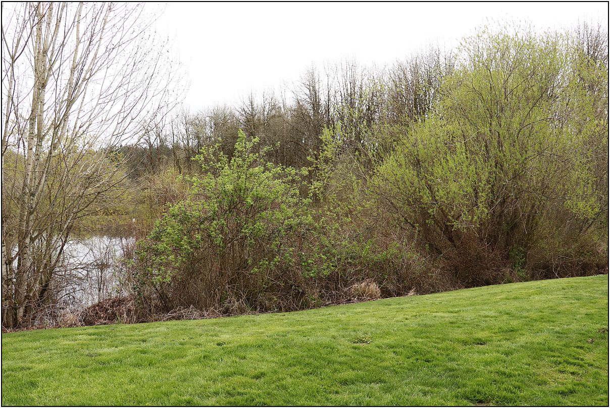This spring some of the green leaves are starting to show. We have had steady showers so I've had to make sure I had umbrellas with me. In addition to the rainstorms the mountain snows are starting to melt which has created flooding along some rivers. I will show this here with my pictures.