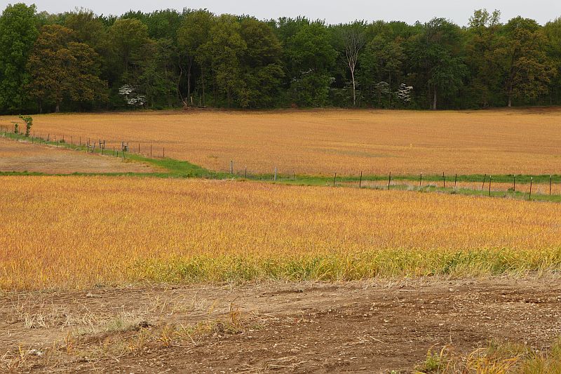 It's not beans or corn or wheat. I think it might be millet. It's turned the fields into a reddish gold color.