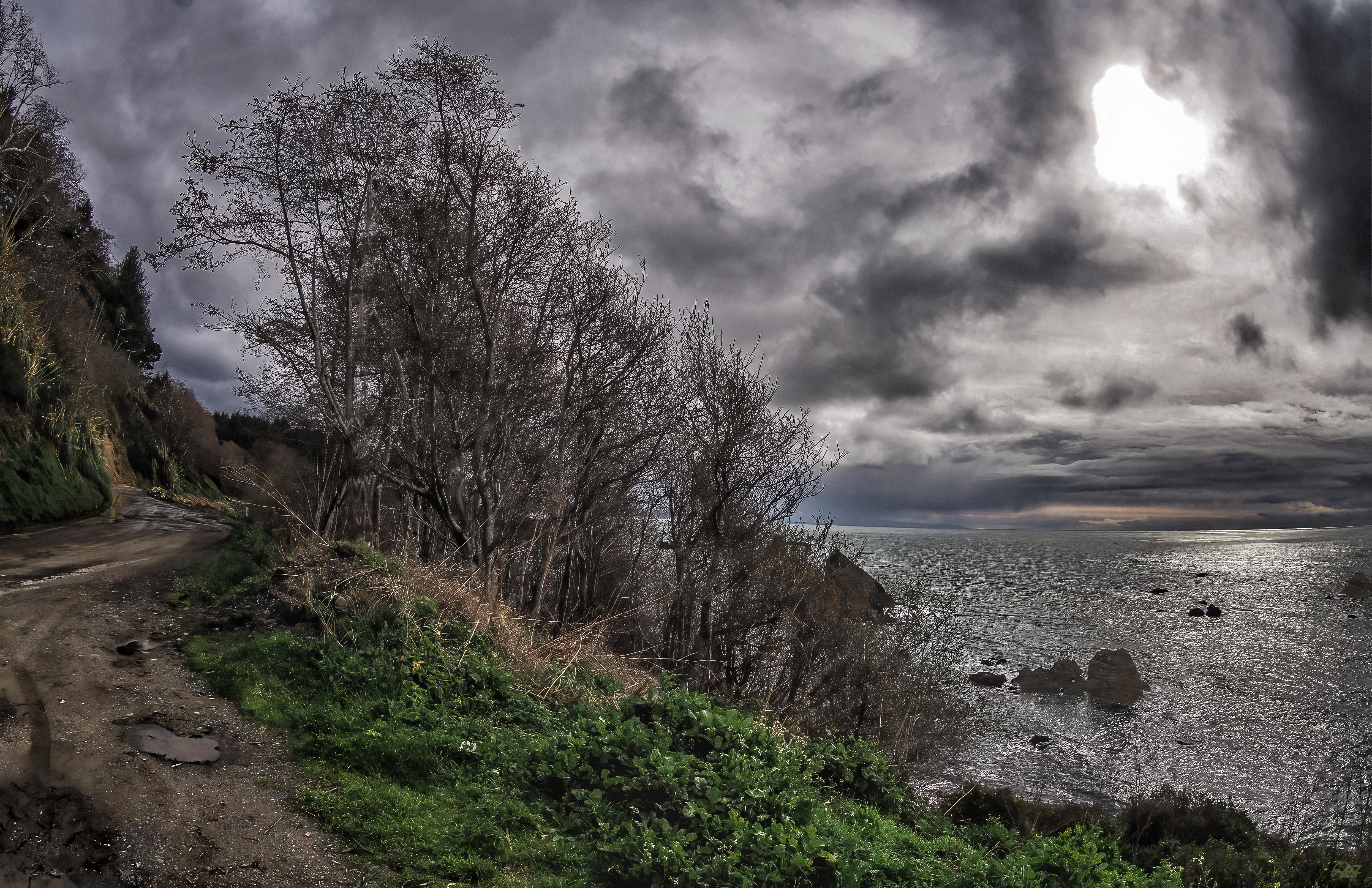 Scenic Drive along Trinidad Bay looking south. It's the old stagecoach road, the original Pacific Coast Highway. You can see Humboldt Bay through the hole in the trees, about 25 miles south. It is one of the best places for photography around here. The Pacific keeps taking bites out of it and the state fixes it back up, as best they can. The northern stretch was closed by a storm a few years ago and never reopened. I didn't think, back 50 years ago, that it would last through my lifetime. It looks like the southern stretch will. om1 mz 8-25, 8mm