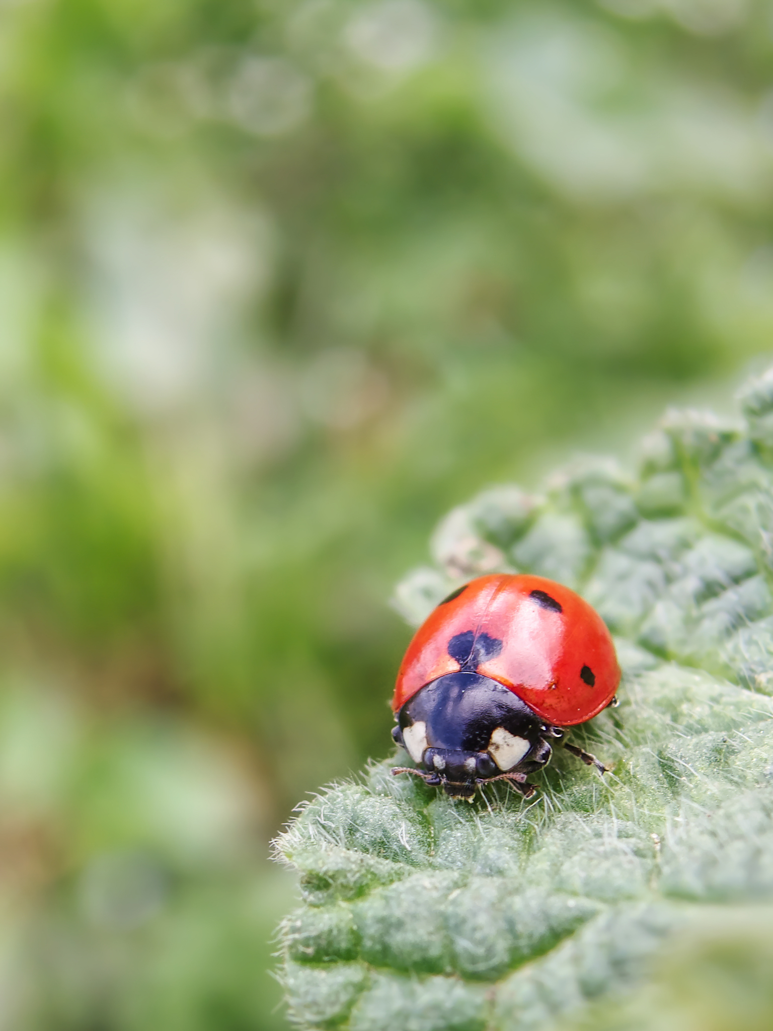 Superb ladybug capture. Can even see it eating. Your camera has a great close-up setting to achieve this much magnification.