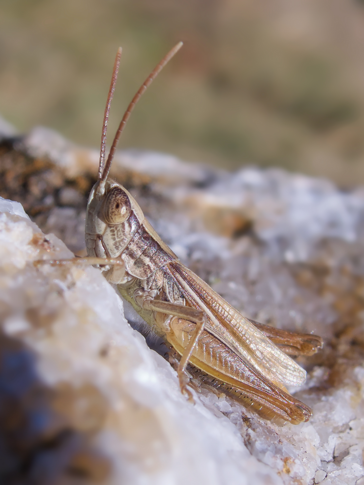 Another example: in this case, this little grasshopper lives among rocks and dry brush...