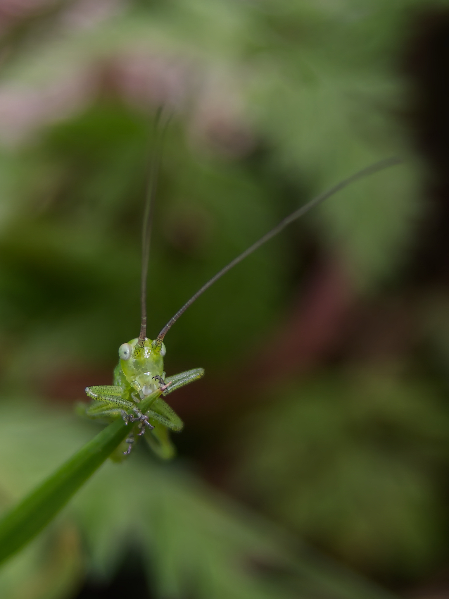 I found this little guy in the middle of the undergrowth, as you can see, scanning the horizon perched on a blade of grass. These photos are usually a disaster, because the background is so close and intrusive. So I took a chance and opened the aperture to its maximum, hoping to at least get his little eye in focus...
