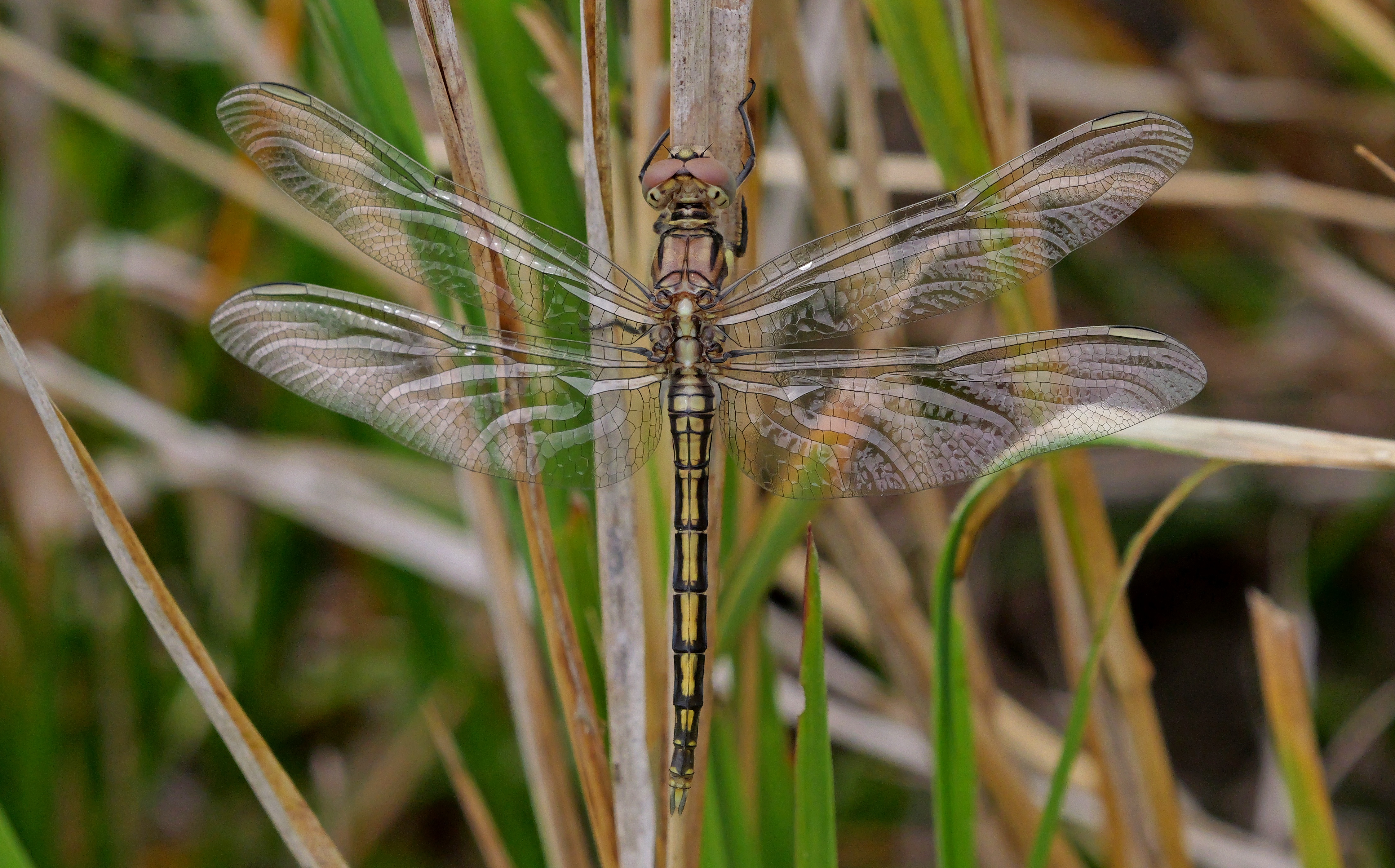As much as I would prefer to think of them as glass rather than plastic, similar to what I mentioned about Monarch wings, Dragonfly wings are very shiny and see-through when they first emerge. Over time they become less so from marks and scratches and bits go missing from predators trying to catch them. So I find them more photogenic at that earlier age.