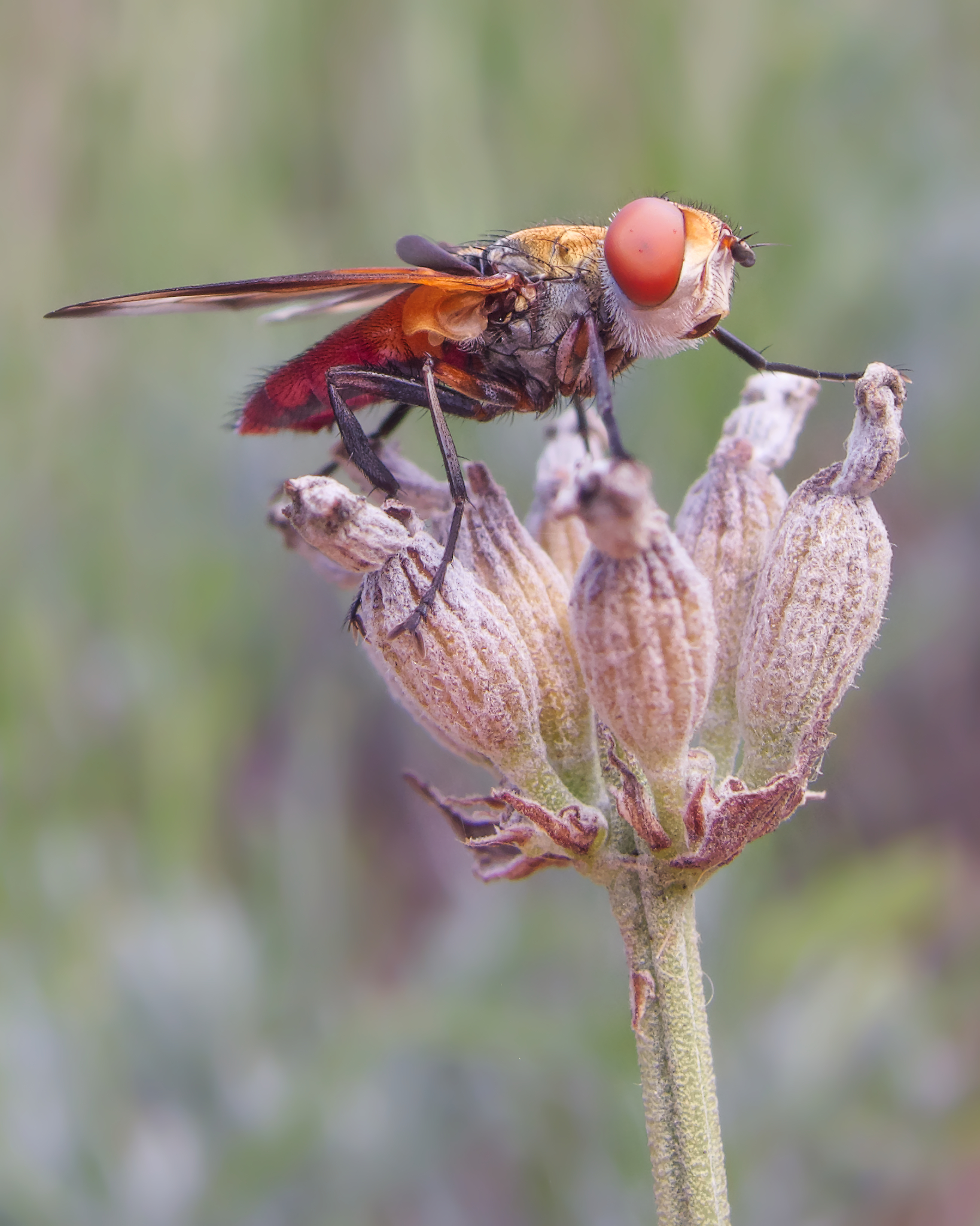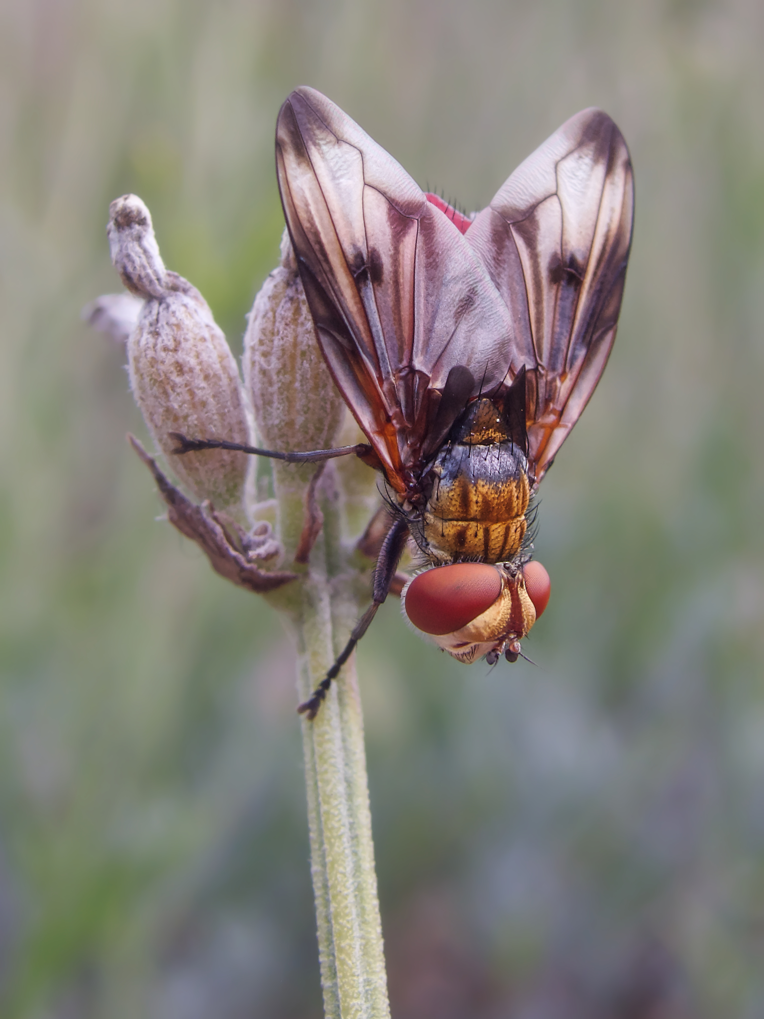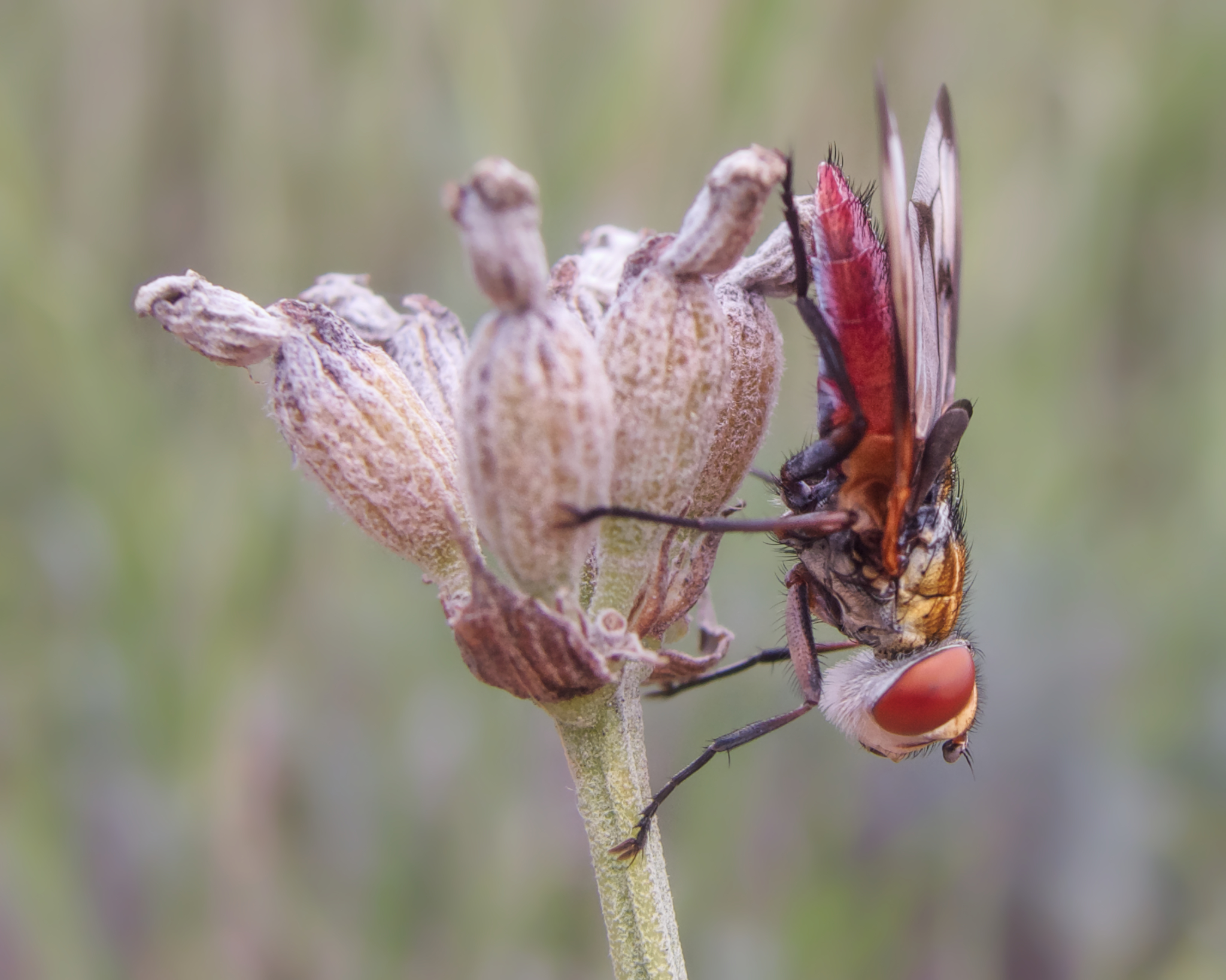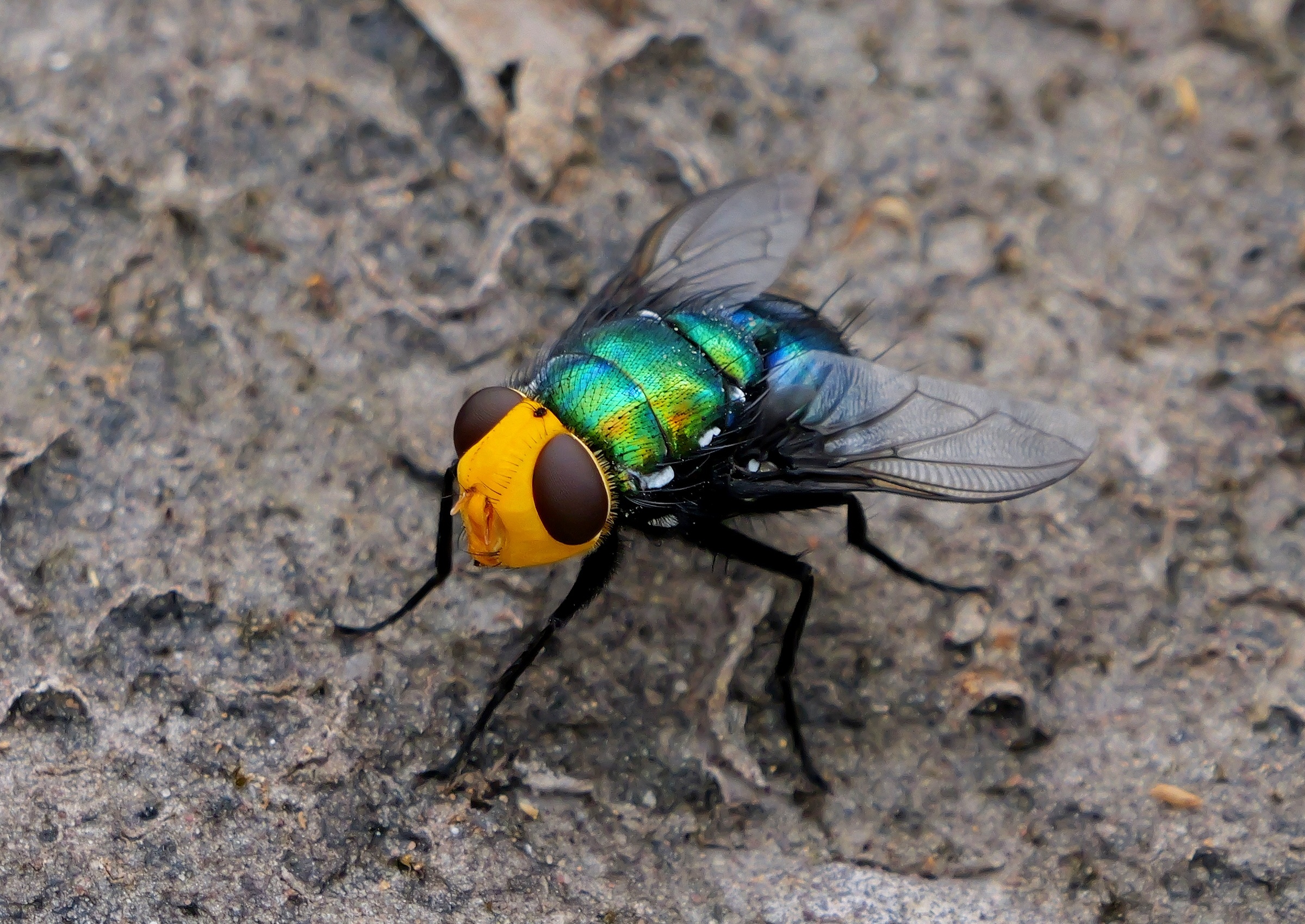 Yellow headed blowfly (aka Snail parasitic blowfly) - unimaginative name as the similarly blue/green bodied, grey faced fly is called a blue bottle...
