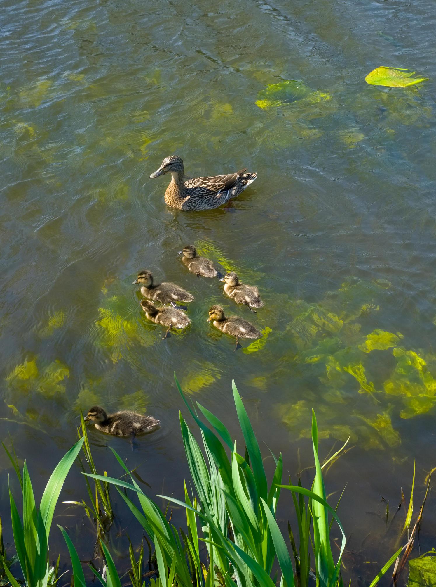 Some duck chicks with an alert mother.