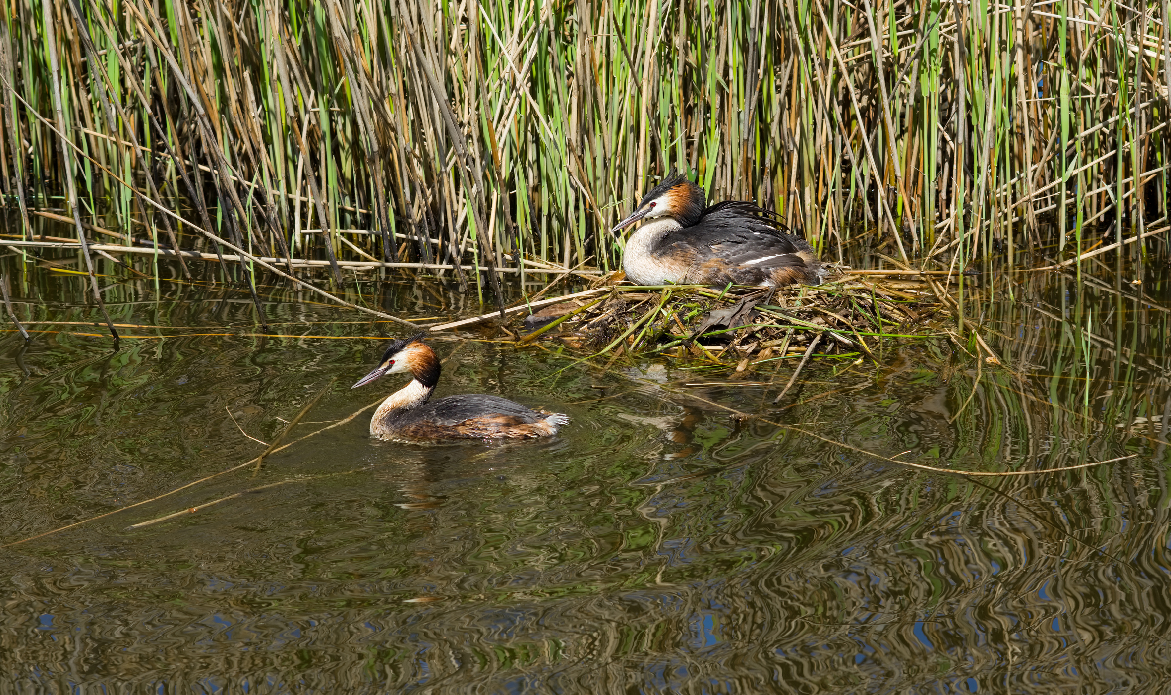 A grebe couple, taken with an adapted Nikon f2.8 100mm Series E.
