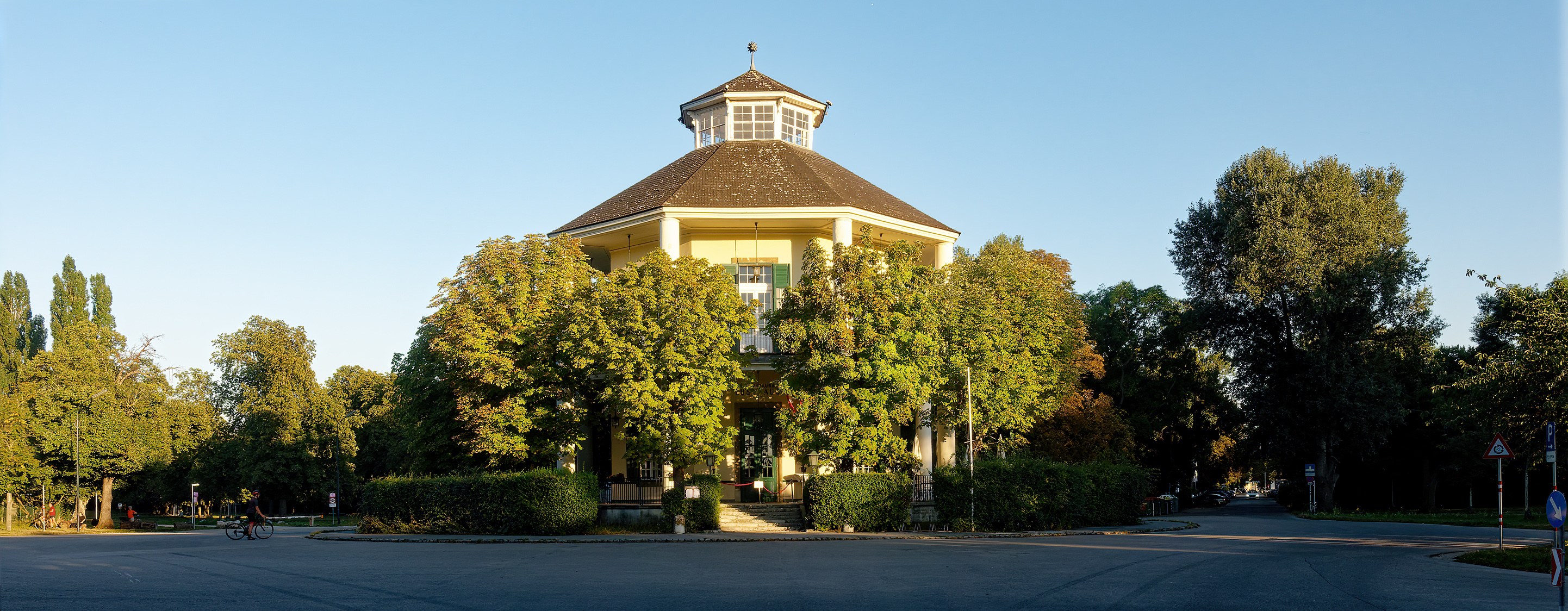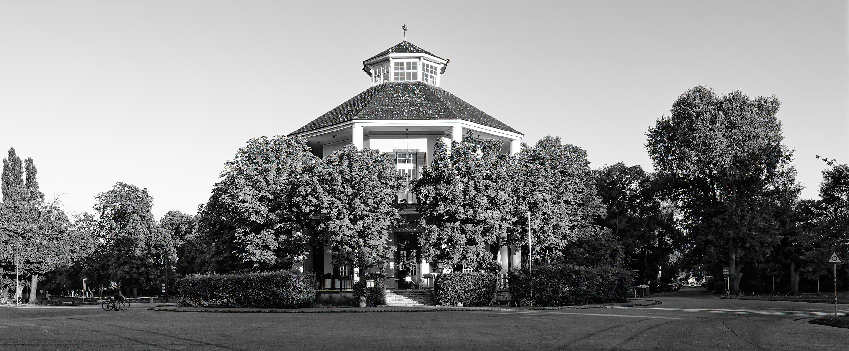 Tonight I took this picture of the Lusthaus in the Prater (Vienna). I am trying to shoot in B&W, but I have to admit that I personally find the colour version more attractive.