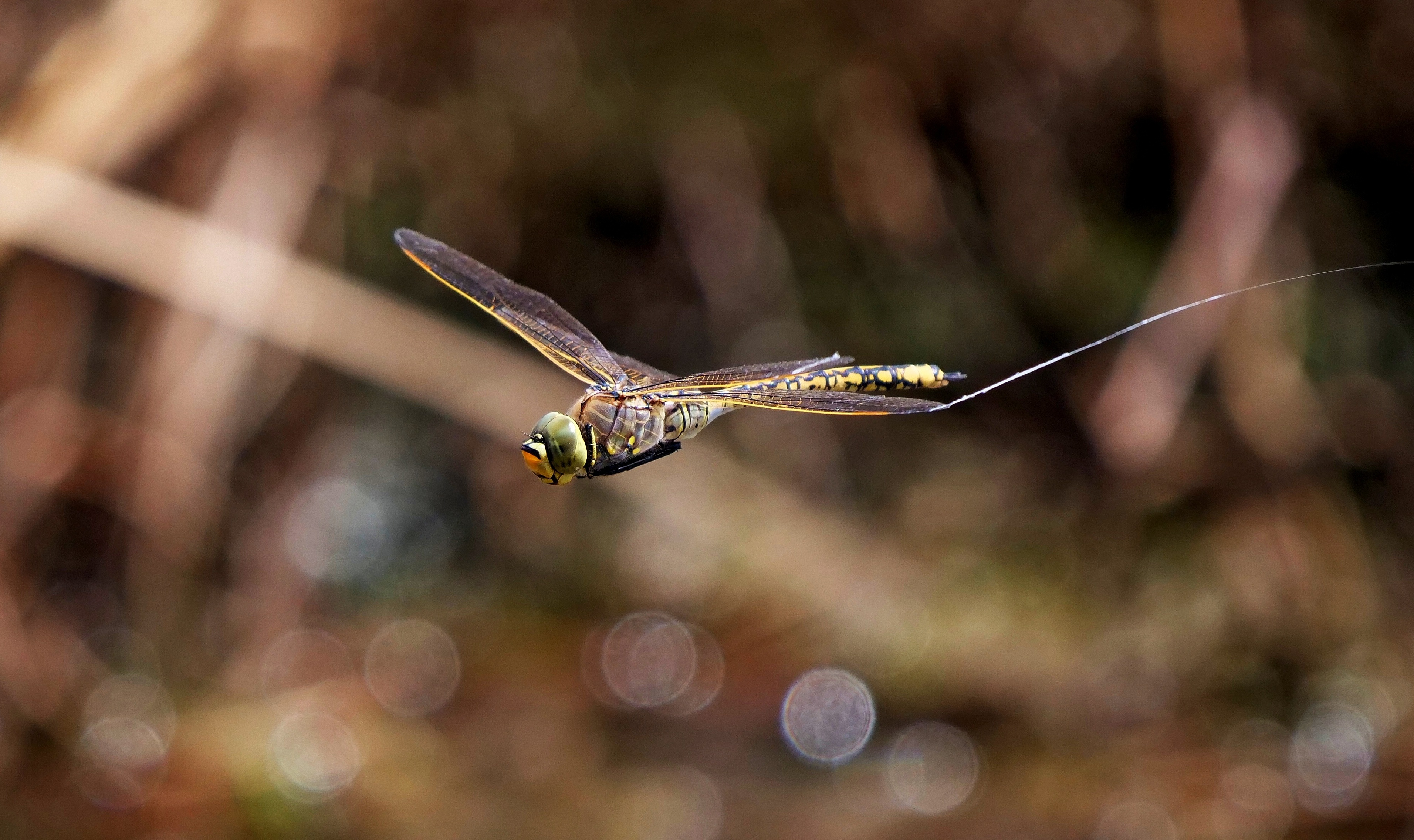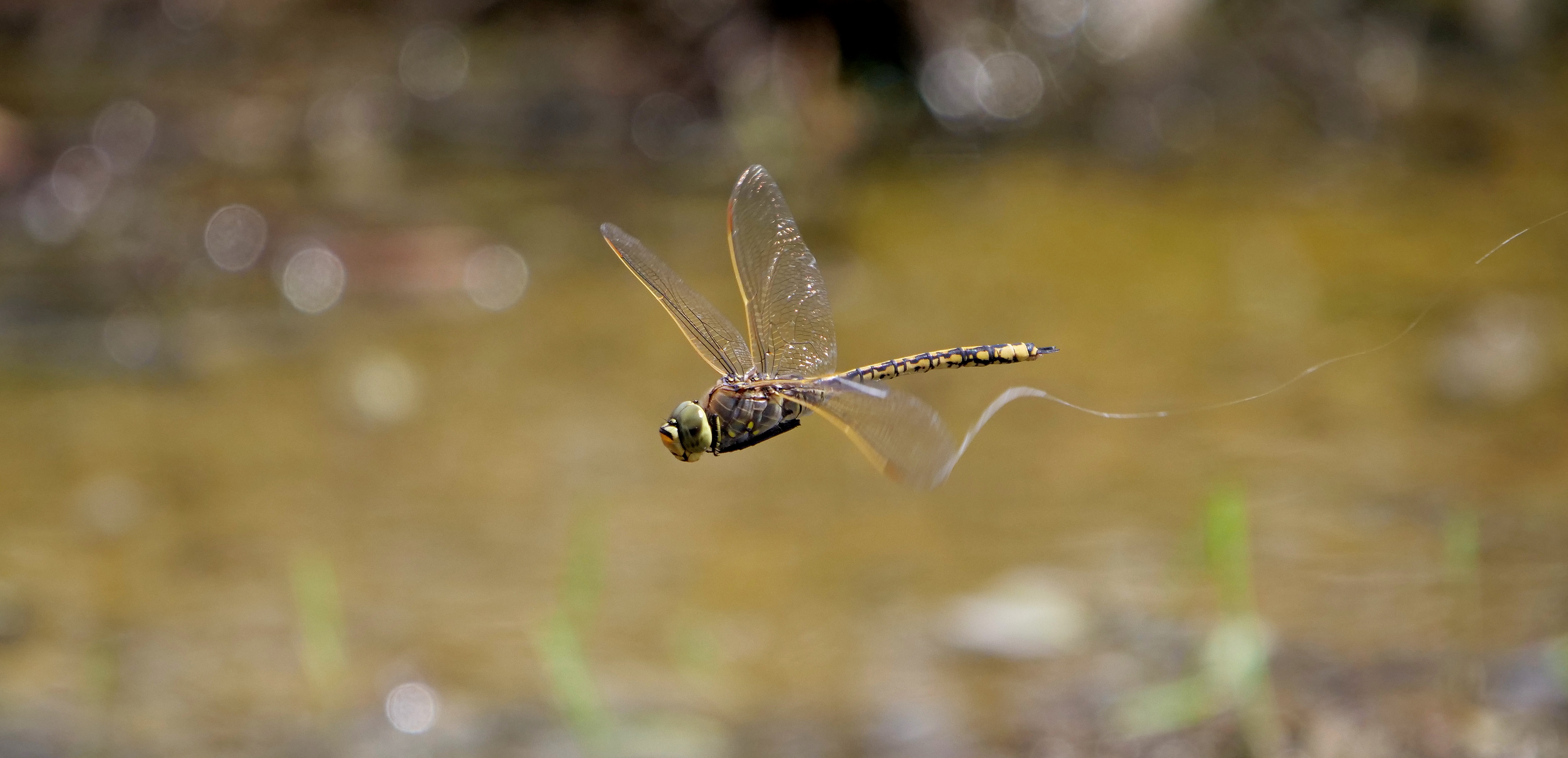 This dragonfly has come into contact with a spider web, managed to escape, and picked up a long strand for its troubles. If you look closely there is another small piece on the front wing...
