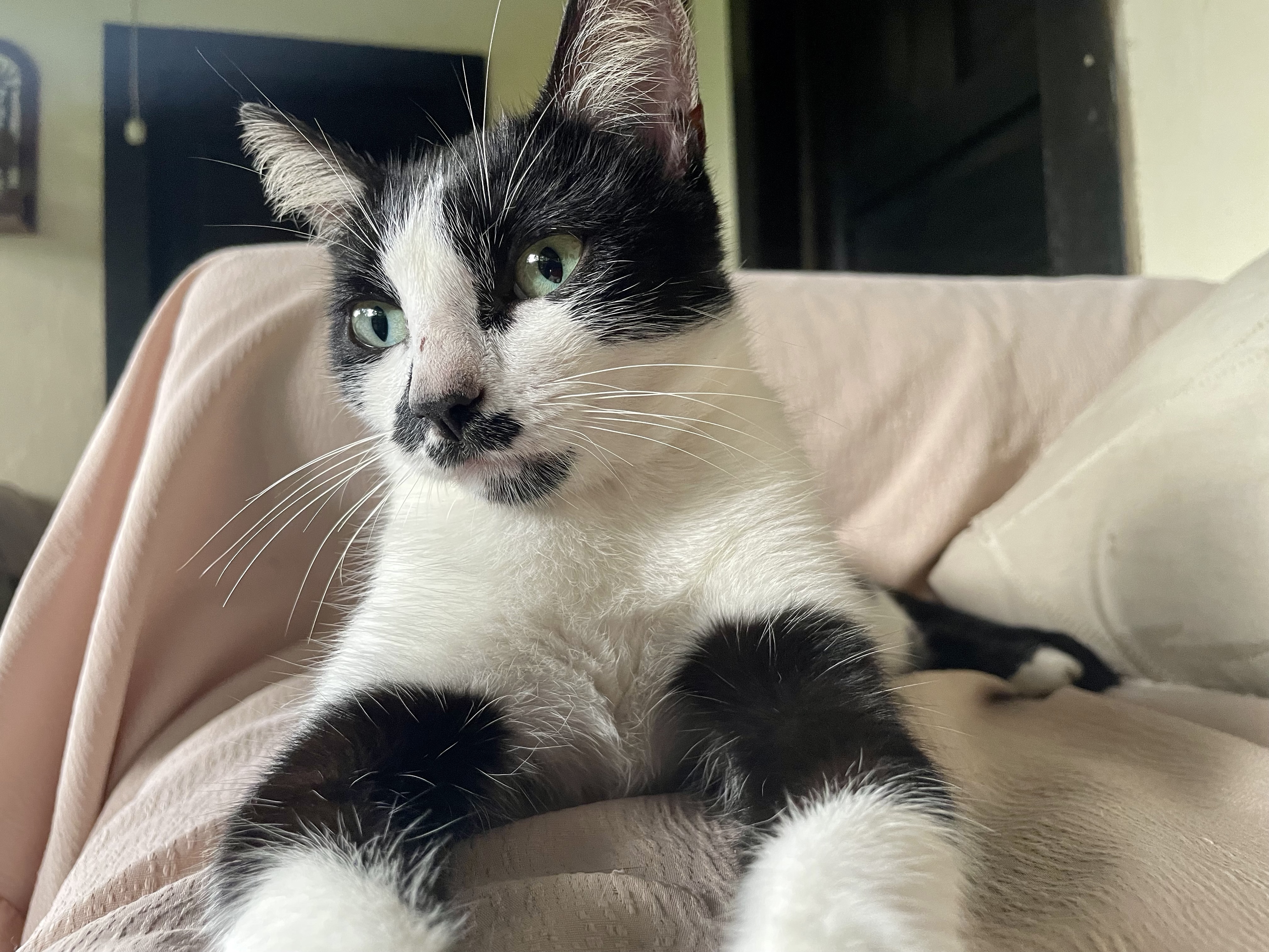 Just such a sweet look. I see what you mean about her smile. Something about the shape of the mouth gives that look. One kitty I had, Cali, always seemed to be smiling as well.