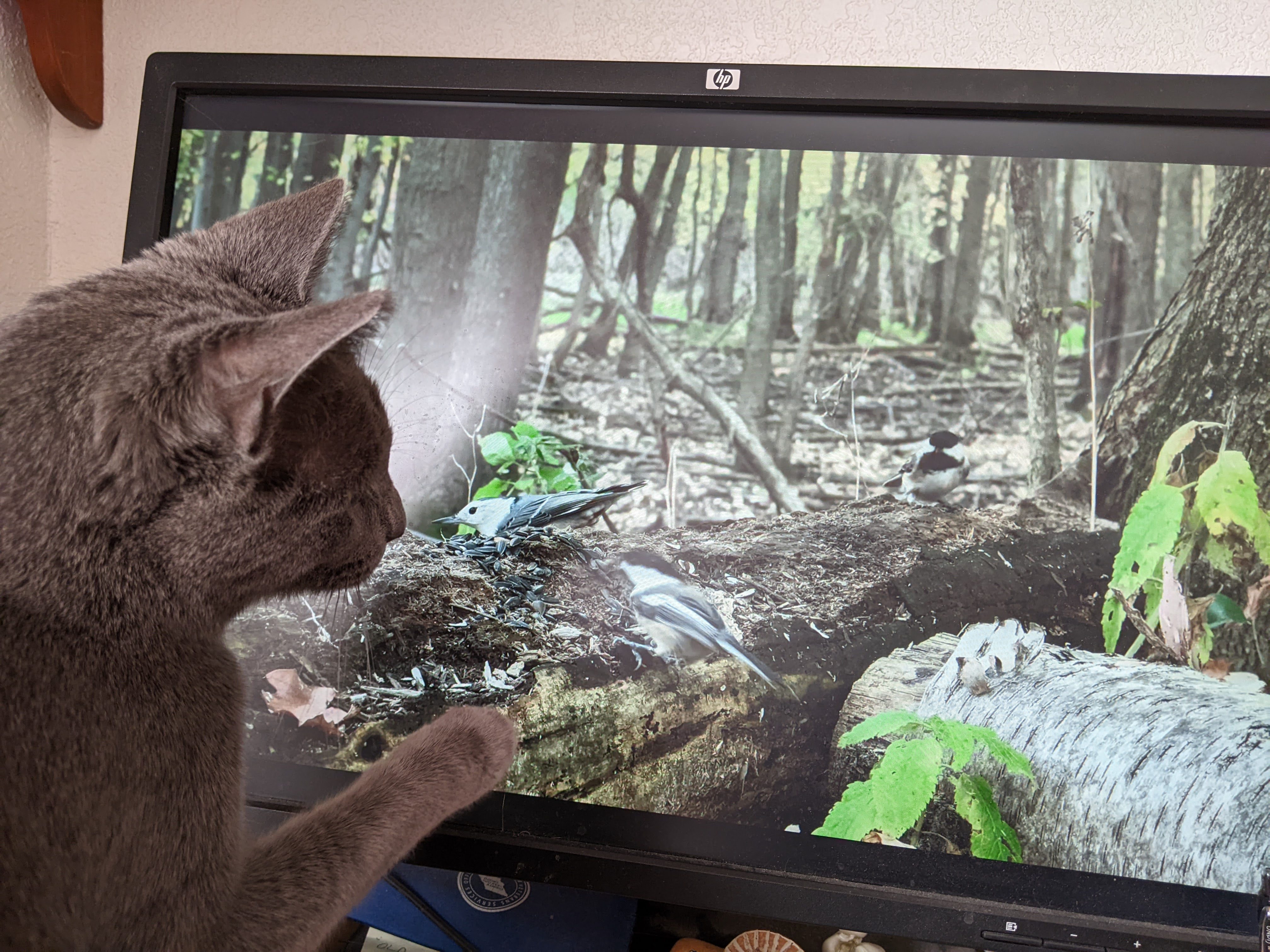During the long, dark months of winter Mokey enjoys a bit of "Cat TV".