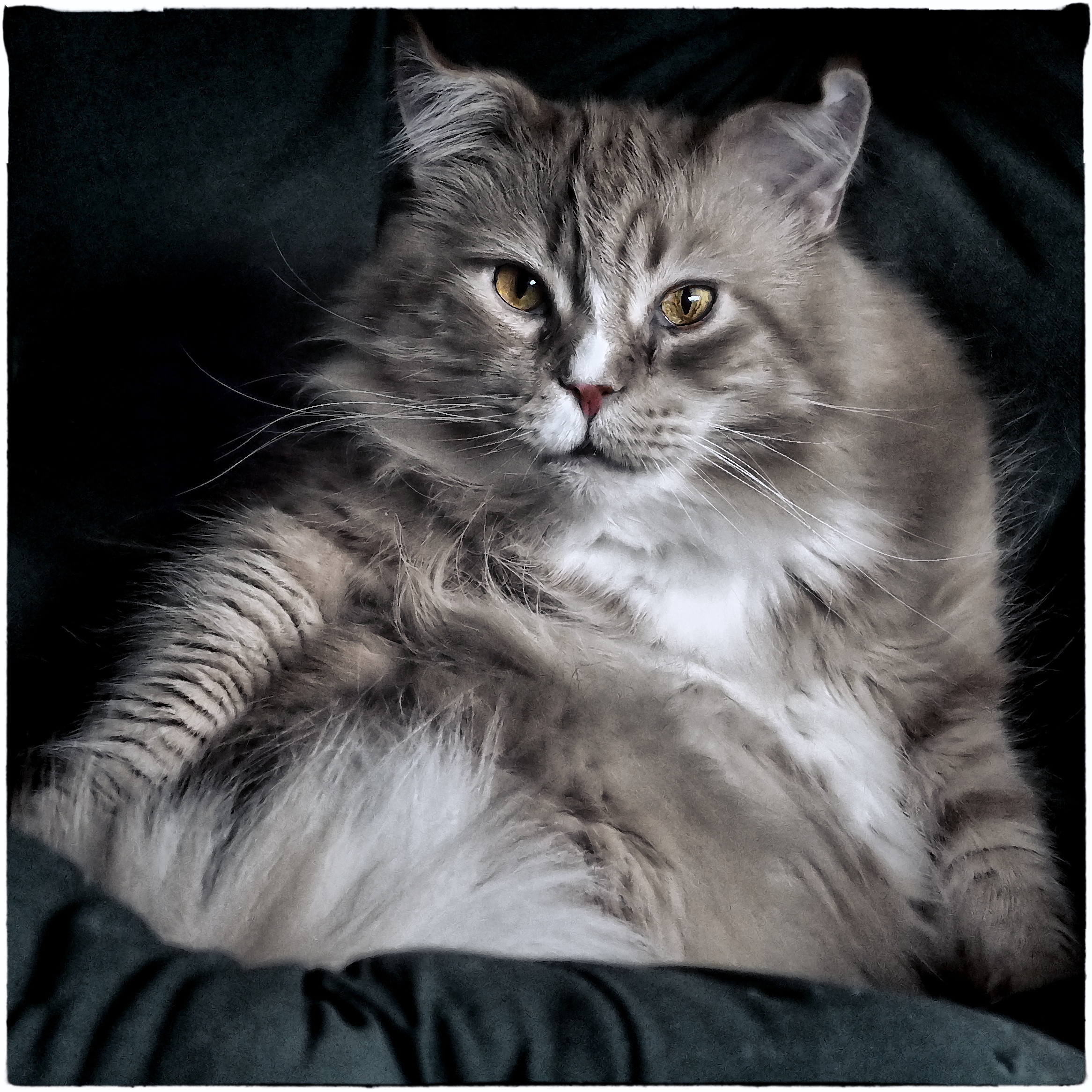 We're a little late today. I had a hard time deciding. (Love this one too.) I was hoping to get some images ready to post today but I'm tangled up in doing my first backup for the new version of Lightroom and spent all of my time (more to come) on that! (Trying to figure out what the 67k files were that were new. Turns out they are almost all LR previews...) Hopefully I'll make more progress soon! Meantime, the kitties are waiting for their closeups. ;)