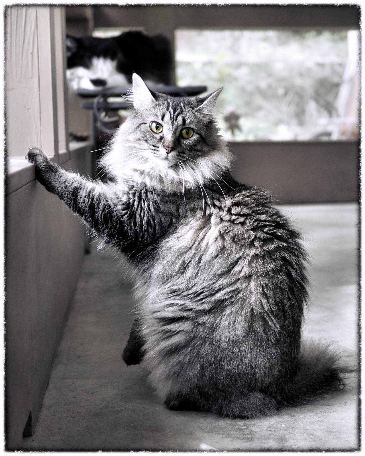 Last week we had a lovely showing of some old friends, and some newer old friends. It was nice to see them all! These days I am spending a lot of time and attention on my old friend Palmer. Sad to say, he is probably in his last months (I hope it isn't weeks). So much of my attention is focused there. Being older and wiser, he also seems to have developed a special talent at looking anywhere but at the camera when one is around. I'll need to work on my shooting with the touchscreen techniques. ;) Meantime, I hope the more cooperative kitties will drop by again this week. :)