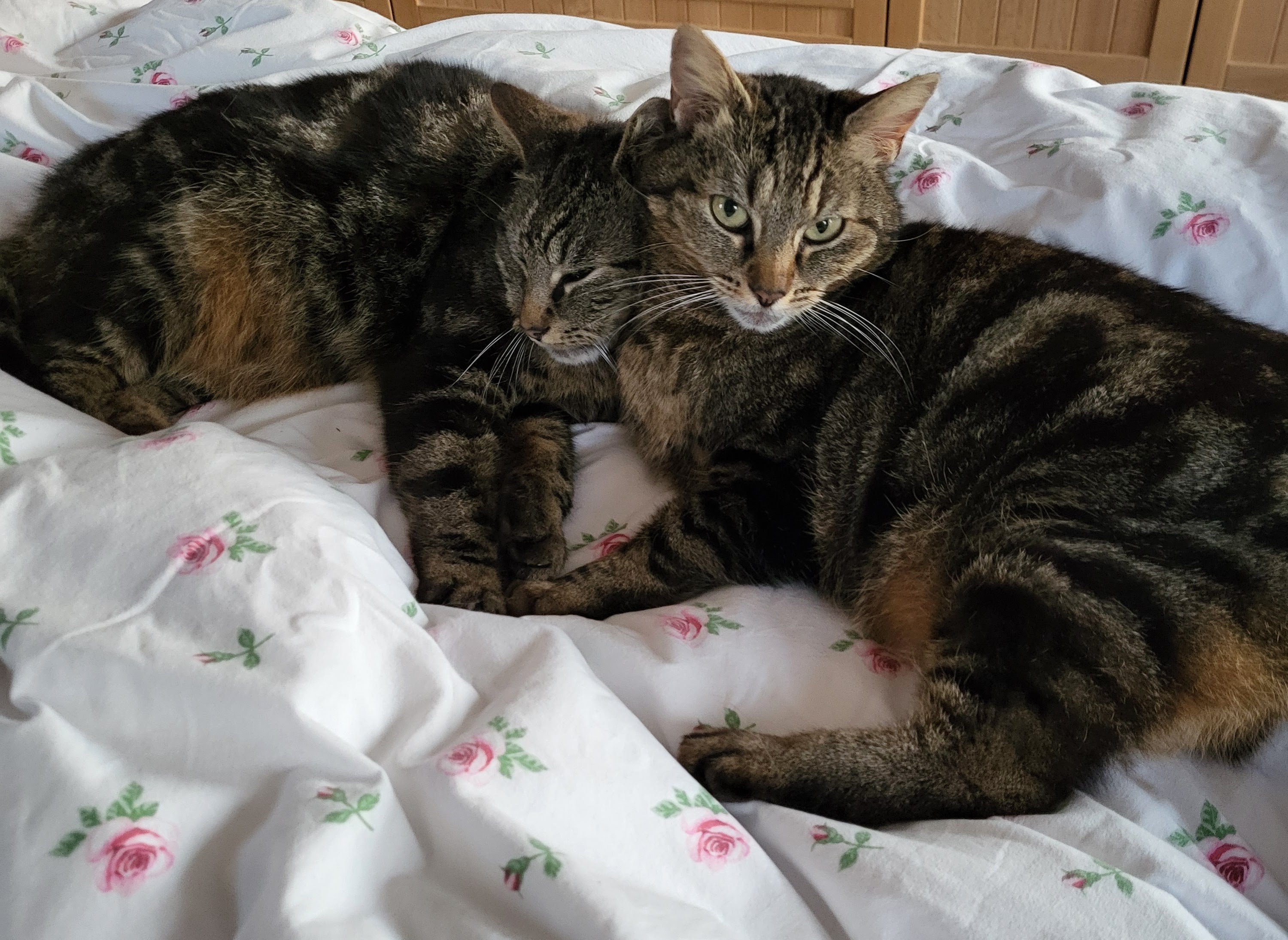 Here she is, on the bed with Fred (who disappeared a few months ago).