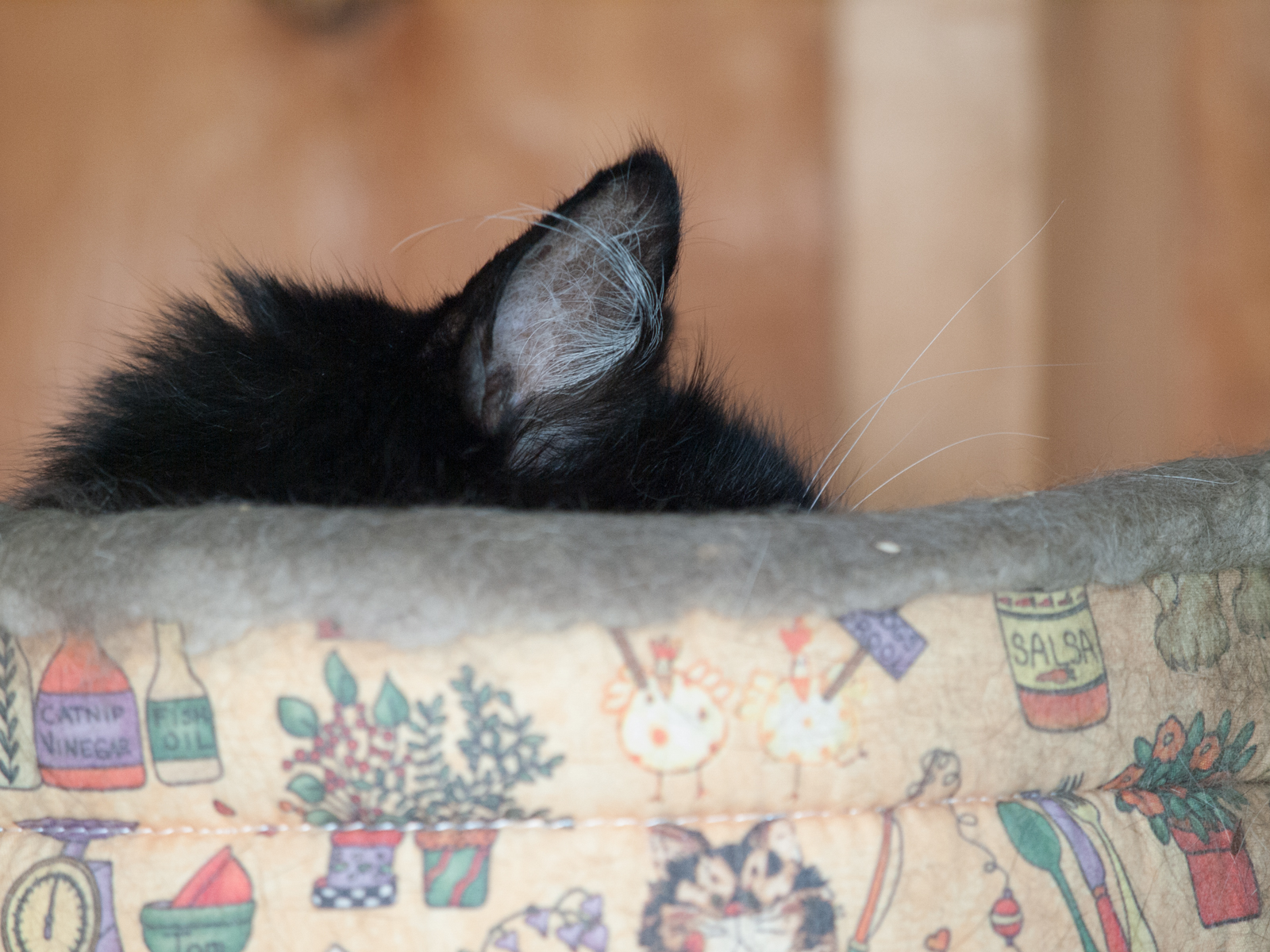As summer ends the kittens of spring and summer are growing up fast, anxious to be cats, but giving us a show on their way to getting there. Meanwhile the cats who "own" us nap comfortably in their beds. :) As you might note I am posting a bit early this week, and expect to do so next weekend. But the kitties won't mind. They're ready for their close-up at any time. ;)