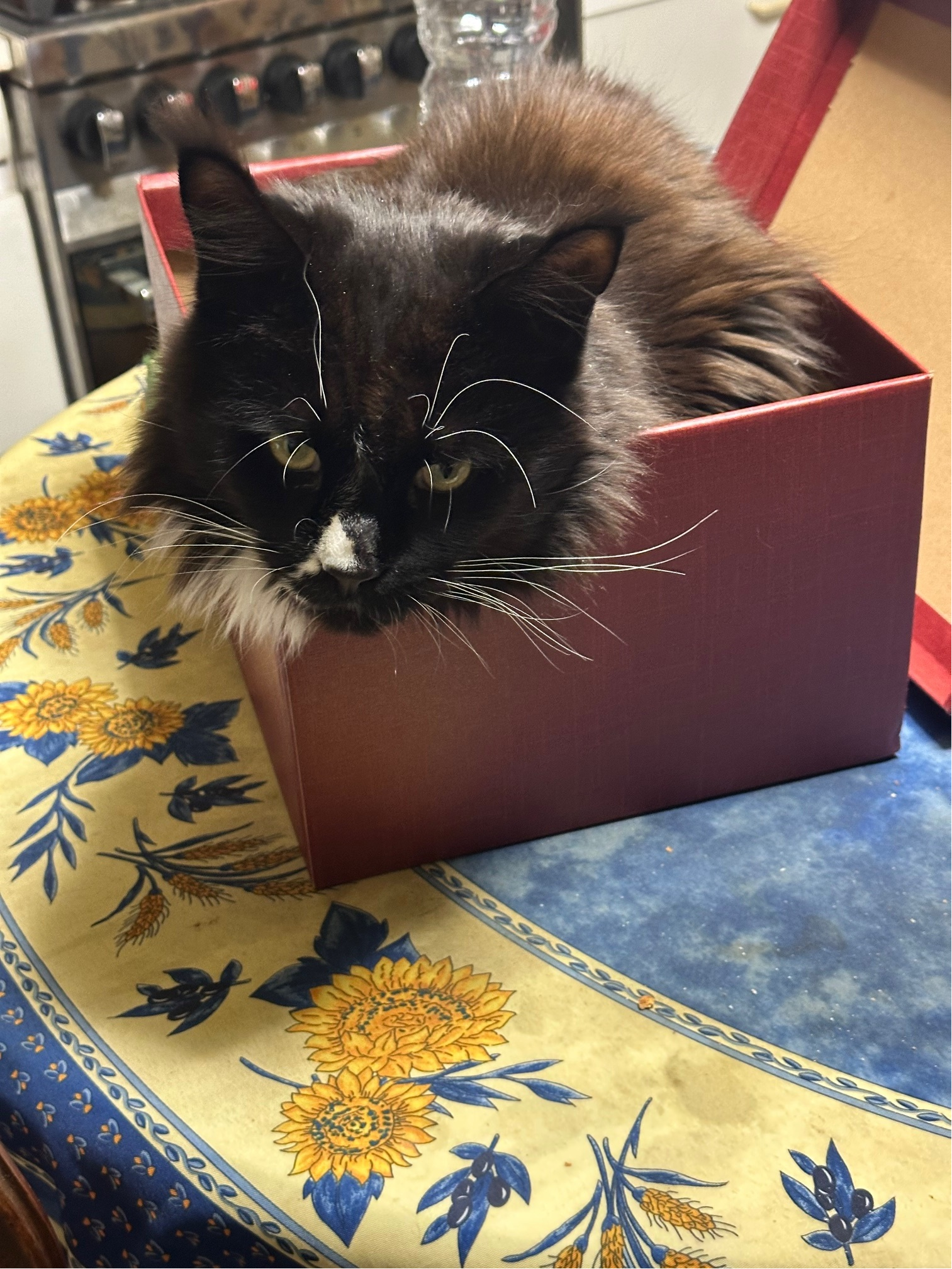 I was given a Christmas Box by a happy client. Micio decided to climb into the box and take a nap.
