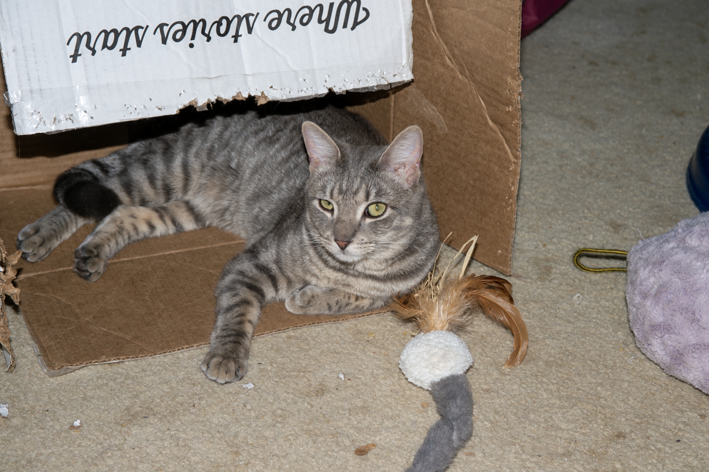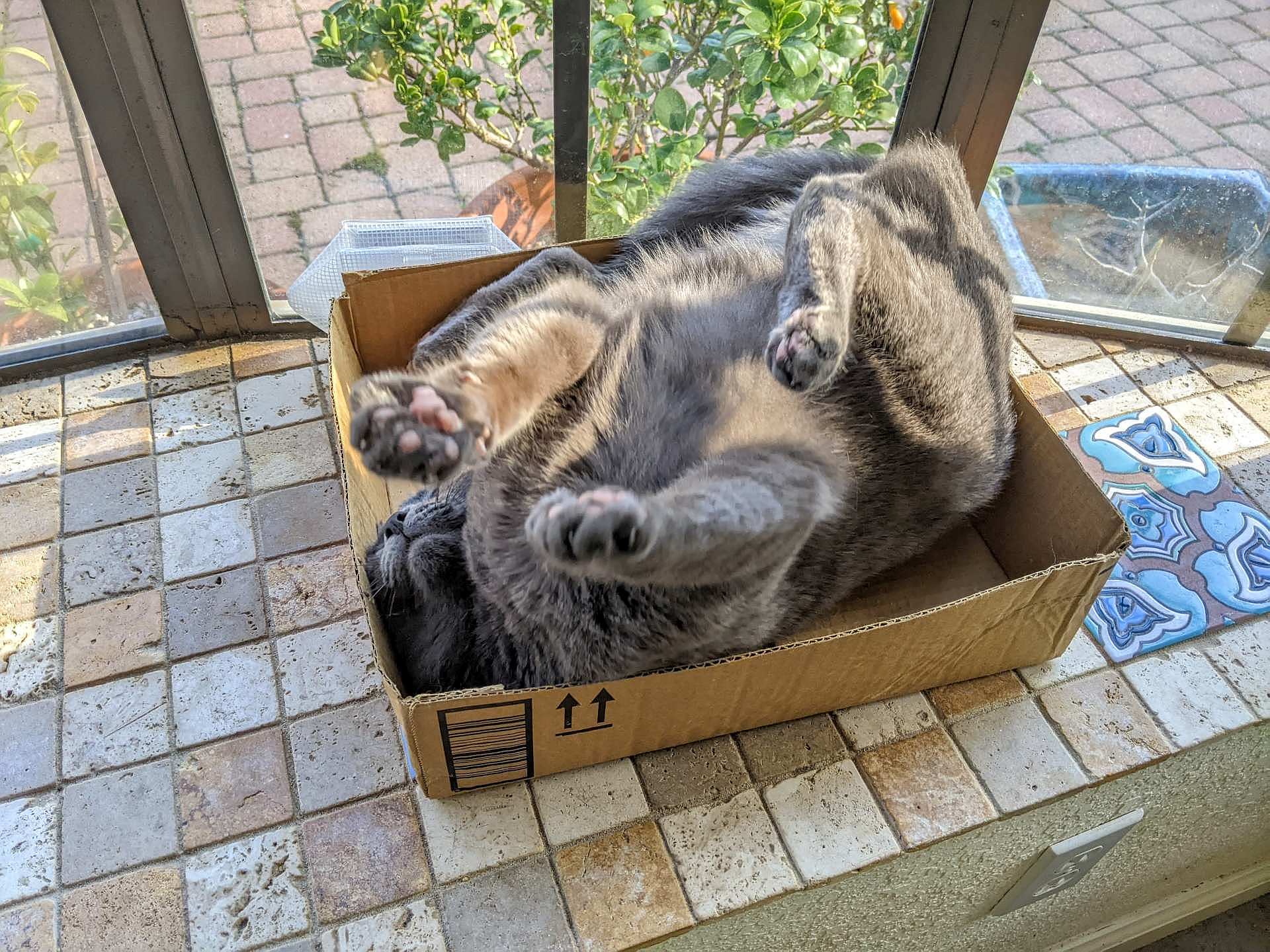 I'm still in the middle of a very messy computer transition and am coming to terms with the computer I'm using now, that is two years older than the 12 year old one I was using before I killed it... Found out tonight either the LAN cable or the LAN port is bad on this computer. But now I am up and running finally, using wireless, not the 56k modem... Boxes certainly generated a number of comments in the thread last week. What other habits do our kitties display that make us wonder, what the heck are they thinking?