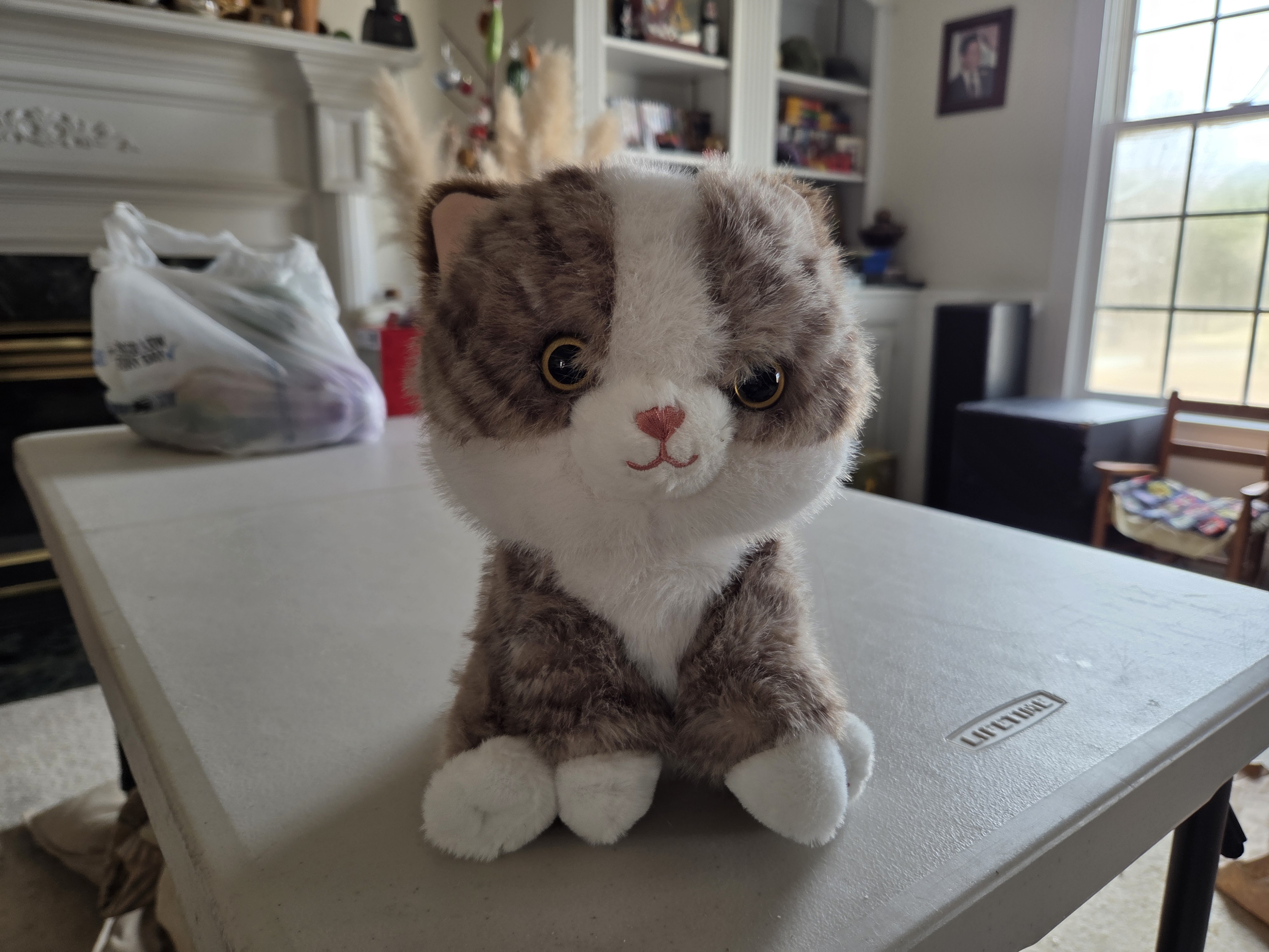 Doris is jealous or Doris, Jr. Mom had it sitting on the end table next to her chair. Doris jumped up, sniffed it, knocked it to the floor, and got onto Mom's lap.