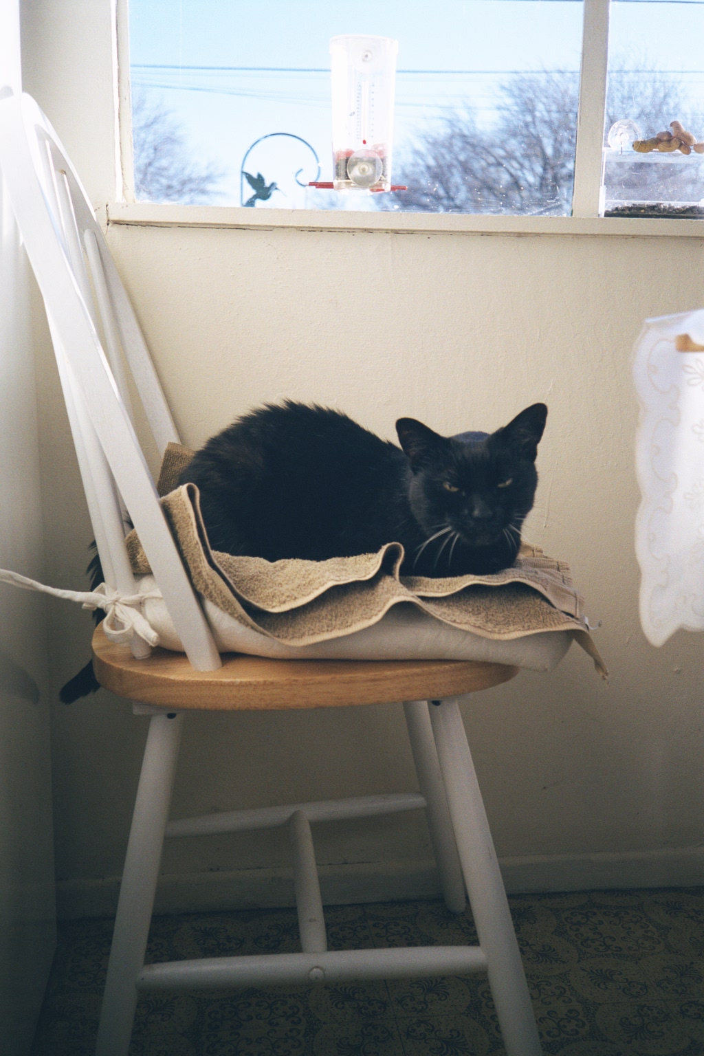 The pictures shown are of her late in life, early 2000. Her whiskers used to be black but they became white with age. In the shot above she was at her favorite bird watching place, a habit she never gave up as she aged. She would even monitor the feeders at night!