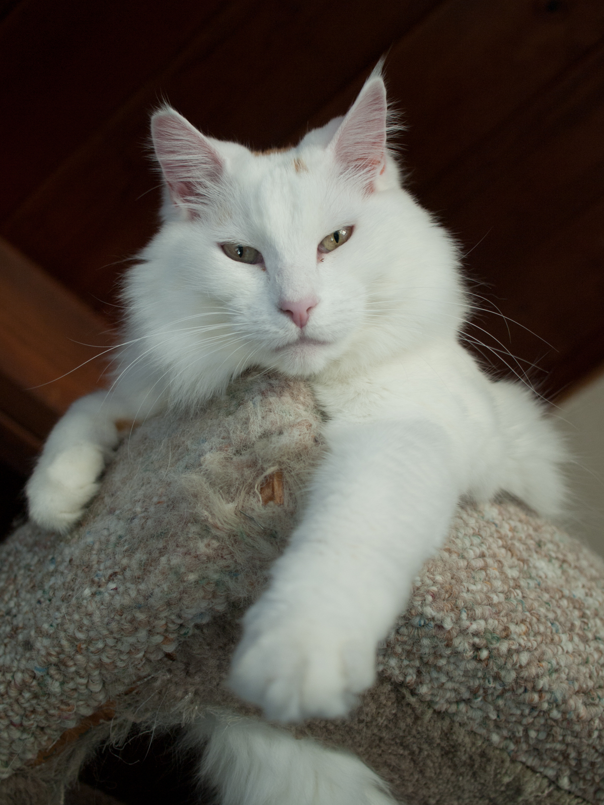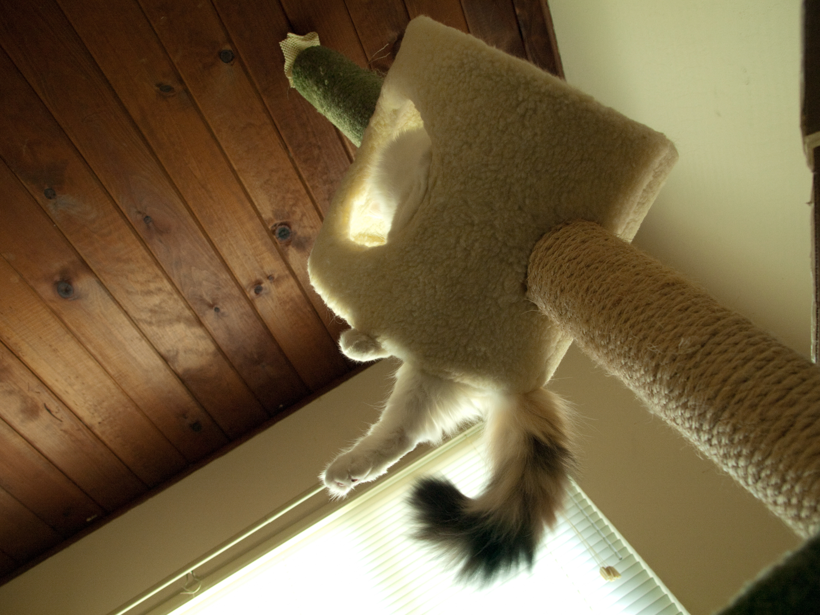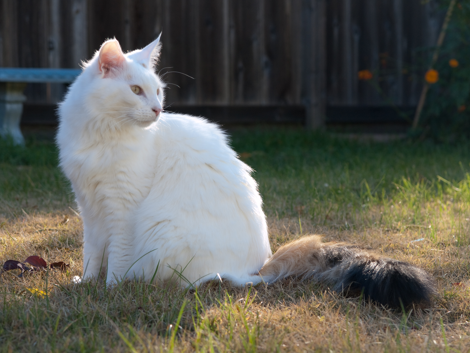 She always wanted us to think that she was a white cat, but her tail would give it way (she's really calico!)