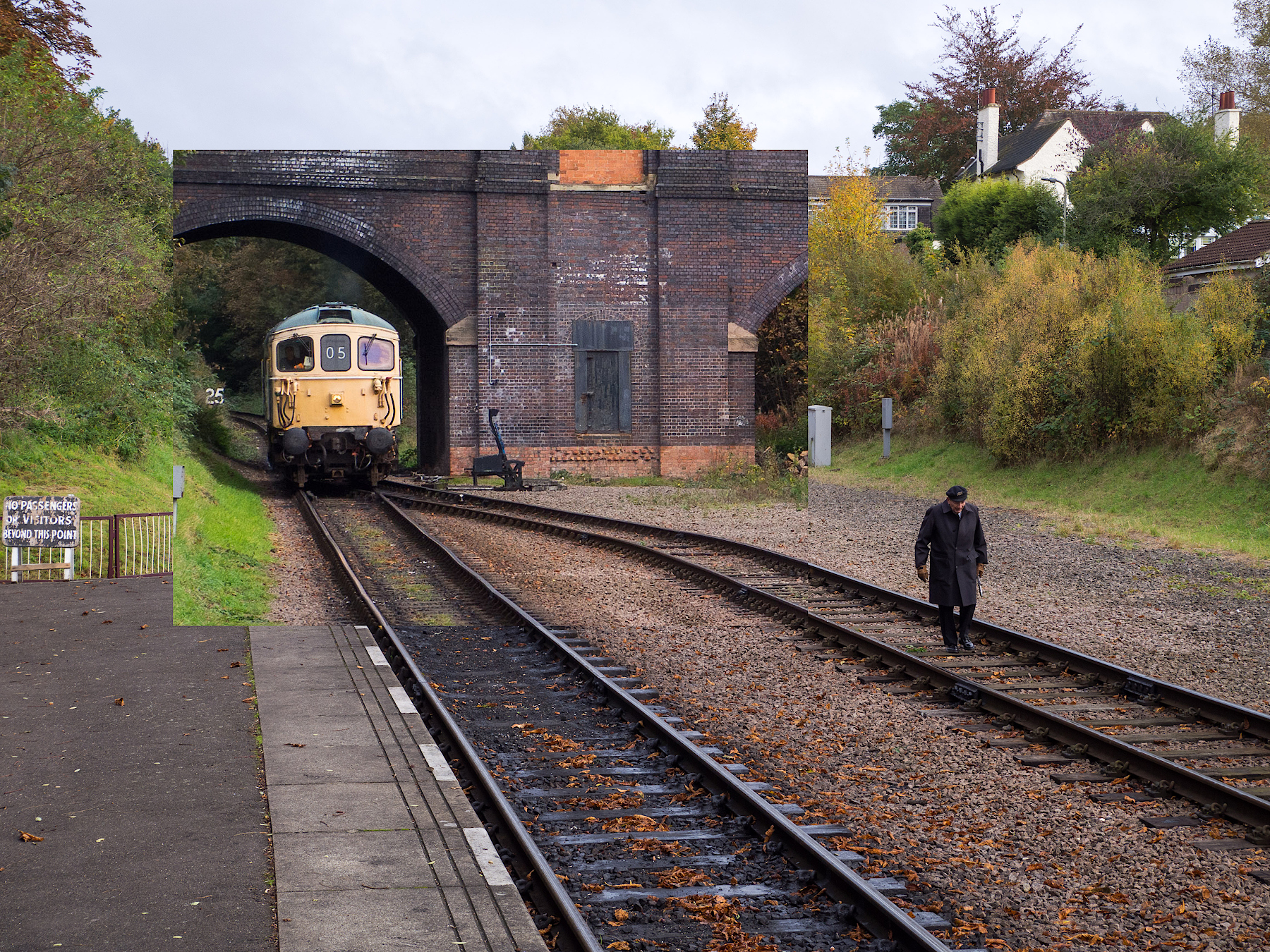 Sit at your normal viewing distance and gaze at the original for a few seconds and make an estimate of the distance between the train and the walker.