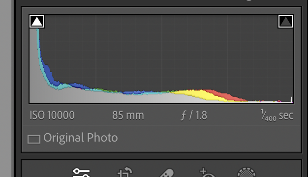 To which I'd say, as an event photographer, who cares? We need to nail the shot. Thats the key. Nail the shot, not nail an optimum raw file. NODODY chases that end goal. There was NEVER a blown highlight anyway. Heres the histogram:
