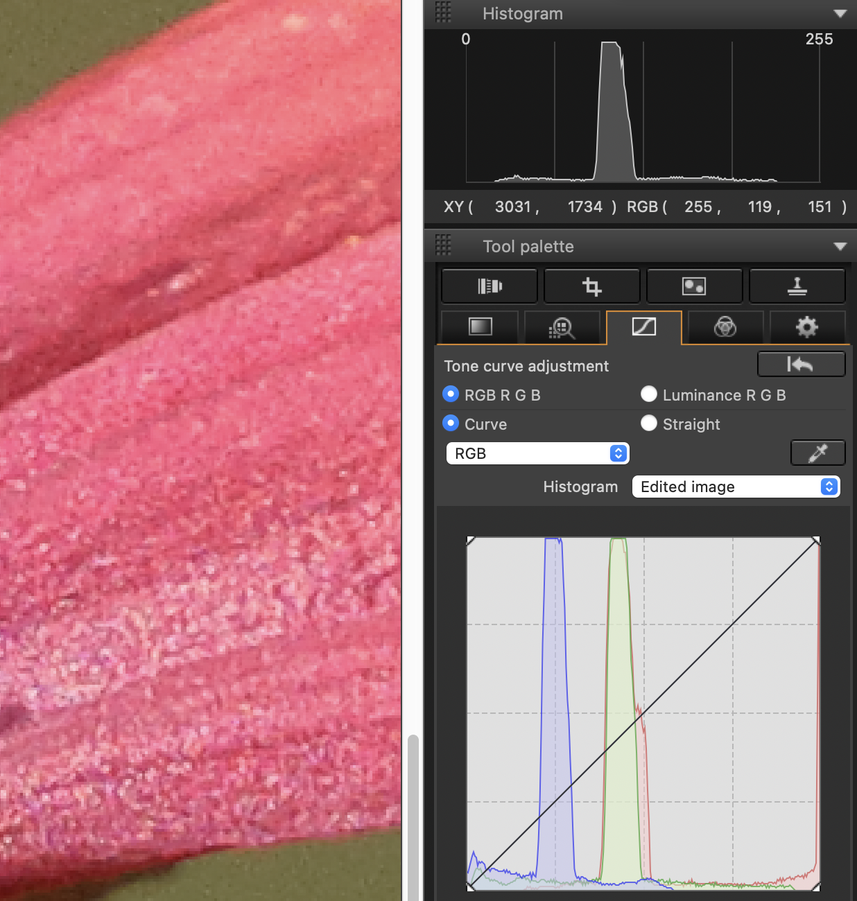 So far as I can understand, I have increased the dynamic range of the input data included and changed the shape of the gamma curve to compress that range into sRGB for display. Now none of the pixels have a red value of 255. But, the color space is distorted. It might still make an attractive photo of a red flower in sunlight.