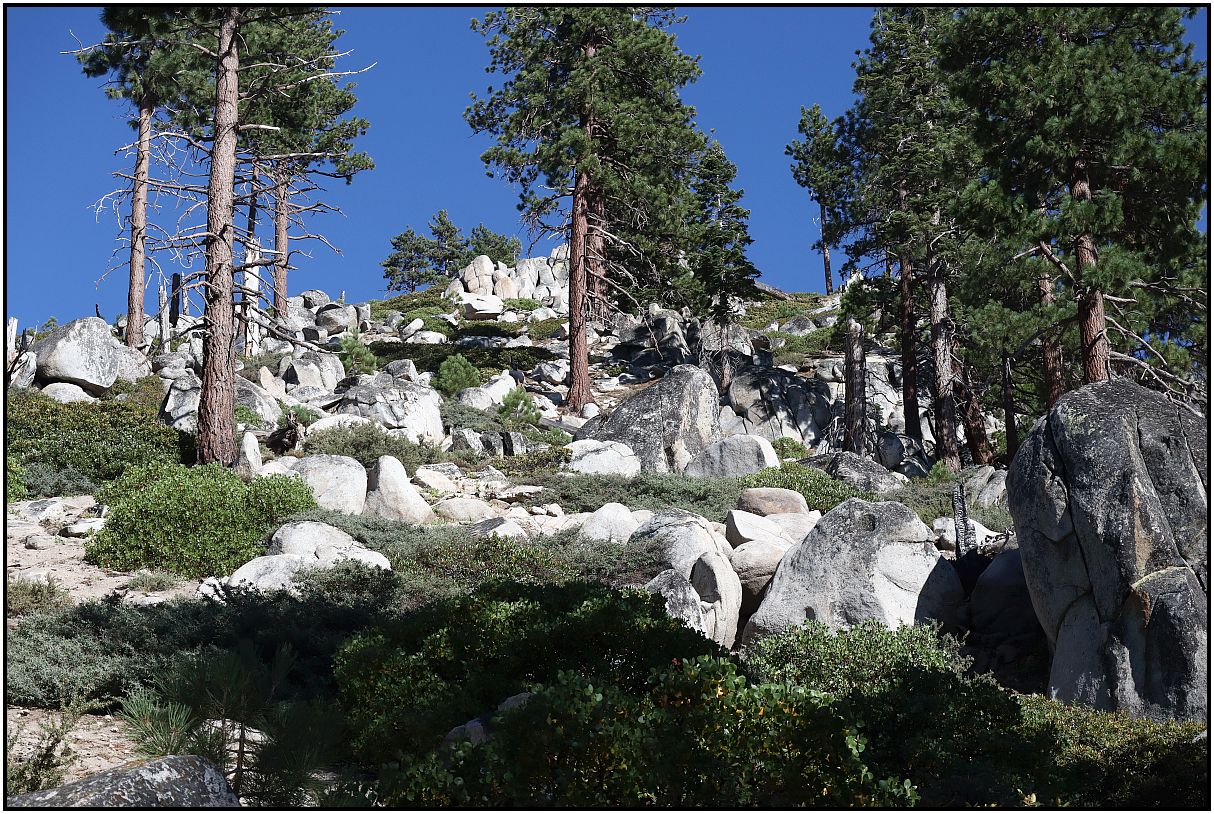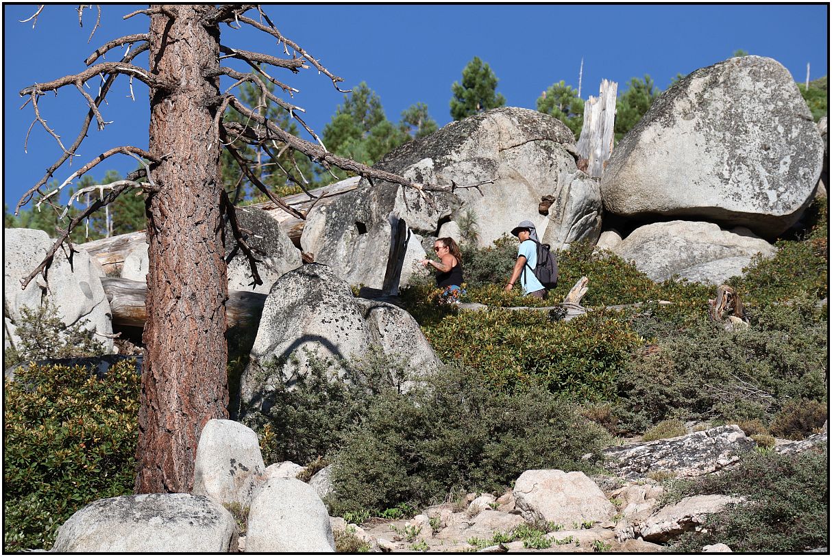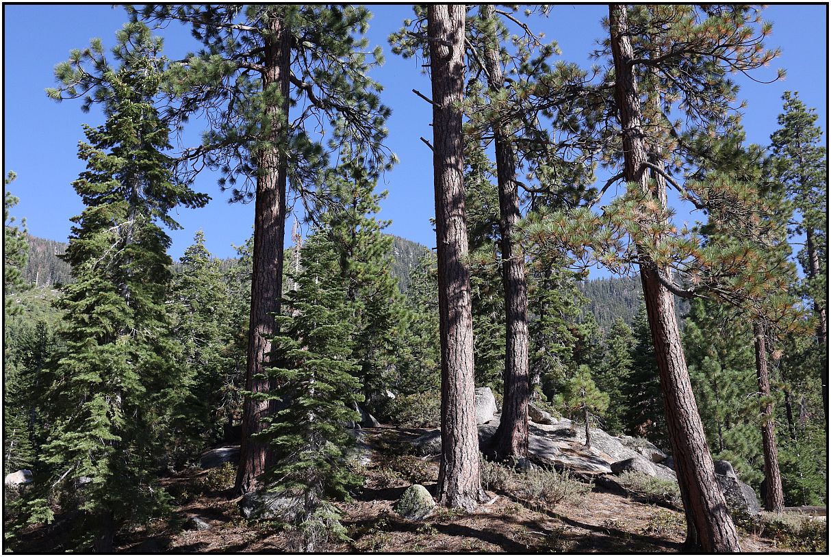 A few weeks ago while on vacation, I went on a hike in the mountains on the California-Nevada border. It was a beautiful day with blue sky. There was smoke from wildfires behind me, but I avoided taking pictures of that. At the higher elevations it was nice.