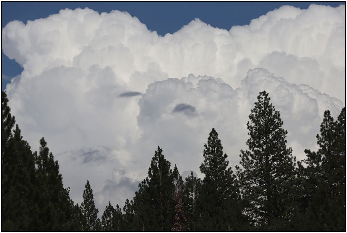 When I was traveling through the mountains on vacation last month, I saw these massive clouds that I assume were thunderstorms. These were on the dry side of the mountain range, where typically the summer temperatures are much warmer at the desert floor. These were taken through the windshield (windscreen) while I was a passenger in a moving car. I was fascinated by the size of these clouds and wondered how much rain it would produce. And I thought about the hail too, that we used to see a lot when I lived in Colorado.