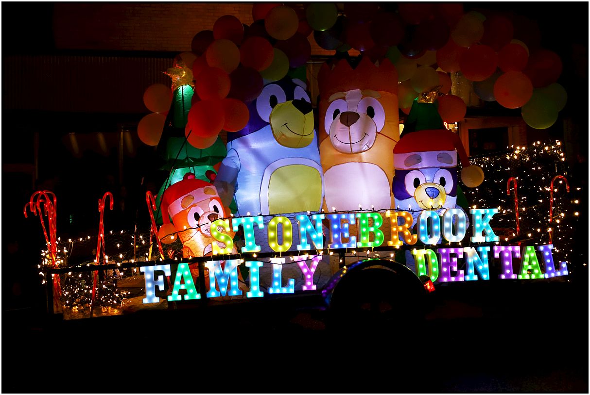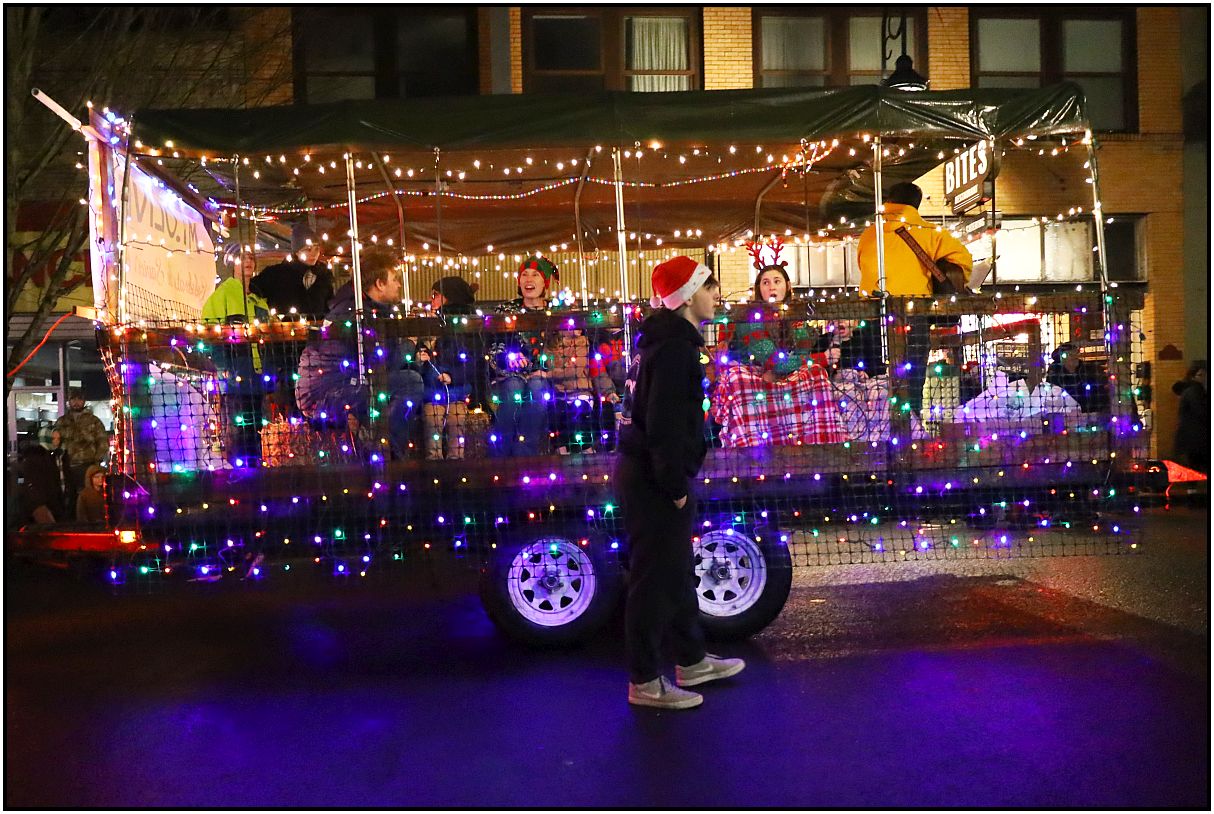 Last month I was able to photograph a local Christmas parade. I was thinking about bringing the Canon R8 to the parade, but I had not really finished adjusting everything yet from the menu (I bought it as a Black Friday special in late November). So I brought the Canon RP instead. This type of photography is beyond just taking low-light pictures, in that everything was dark except where illuminated from street lamps and any other thing that was not the sun. I thought that next year I should be on the other side of the street, because they seemed to stay nearer to that side. Also it helps to be close to a street lamp that will shine on the participants a little.