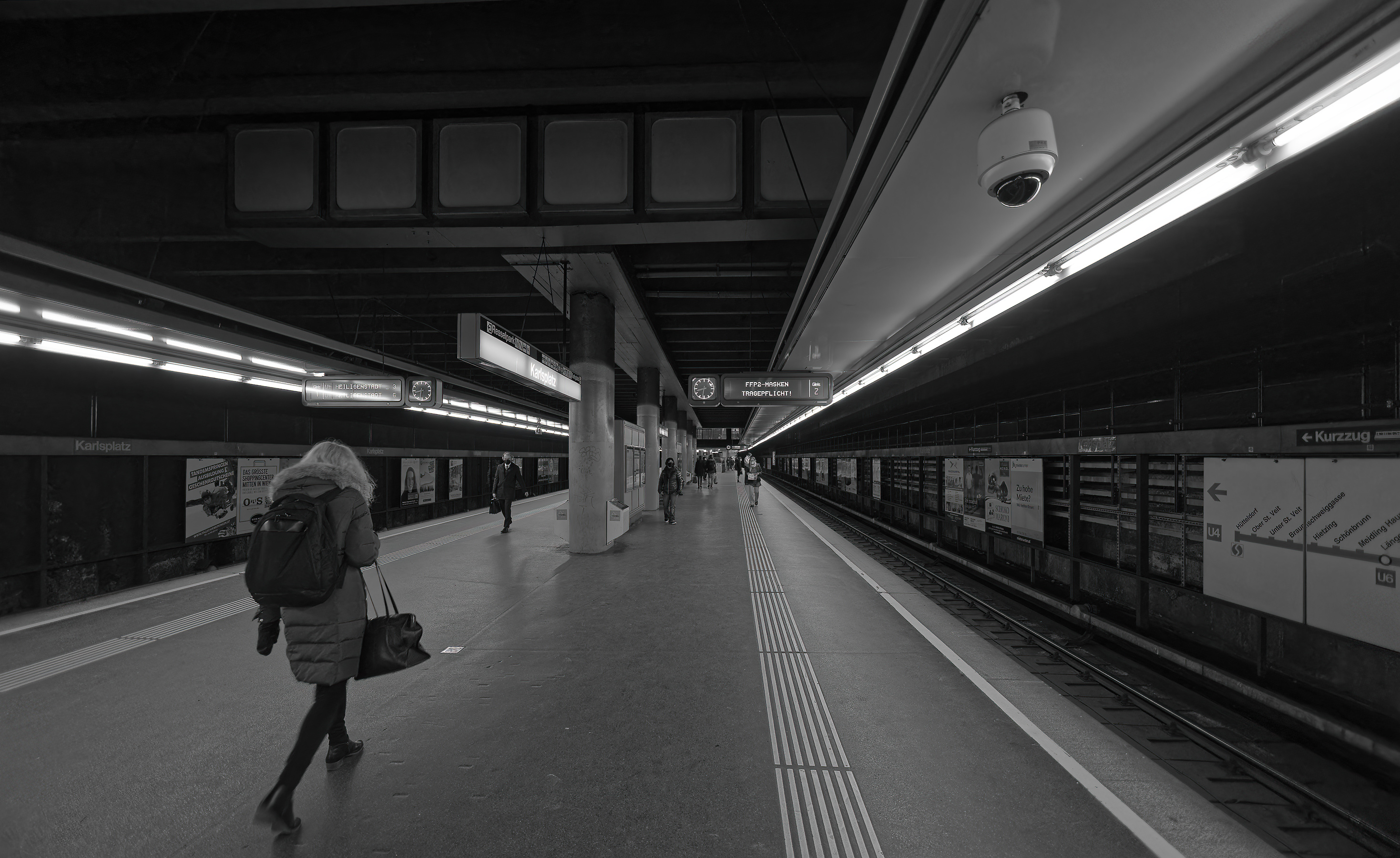 As I have said before, I am not generally a fan of B&W; but underground railways seem to lend themselves to it. These two are from November 2021: same station, different lines.