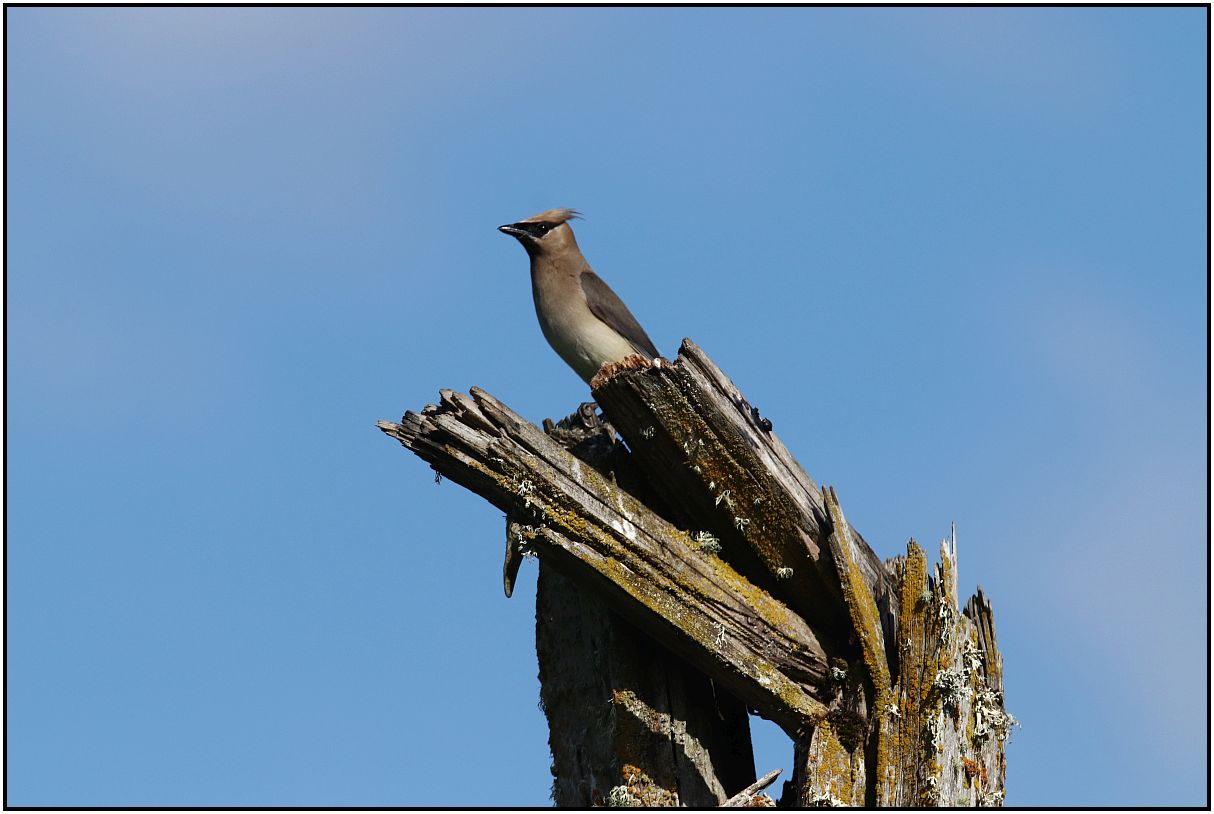 Photo No. 4 - Still I could not find much. Then I saw this Cedar Waxwing on the top of this pole.