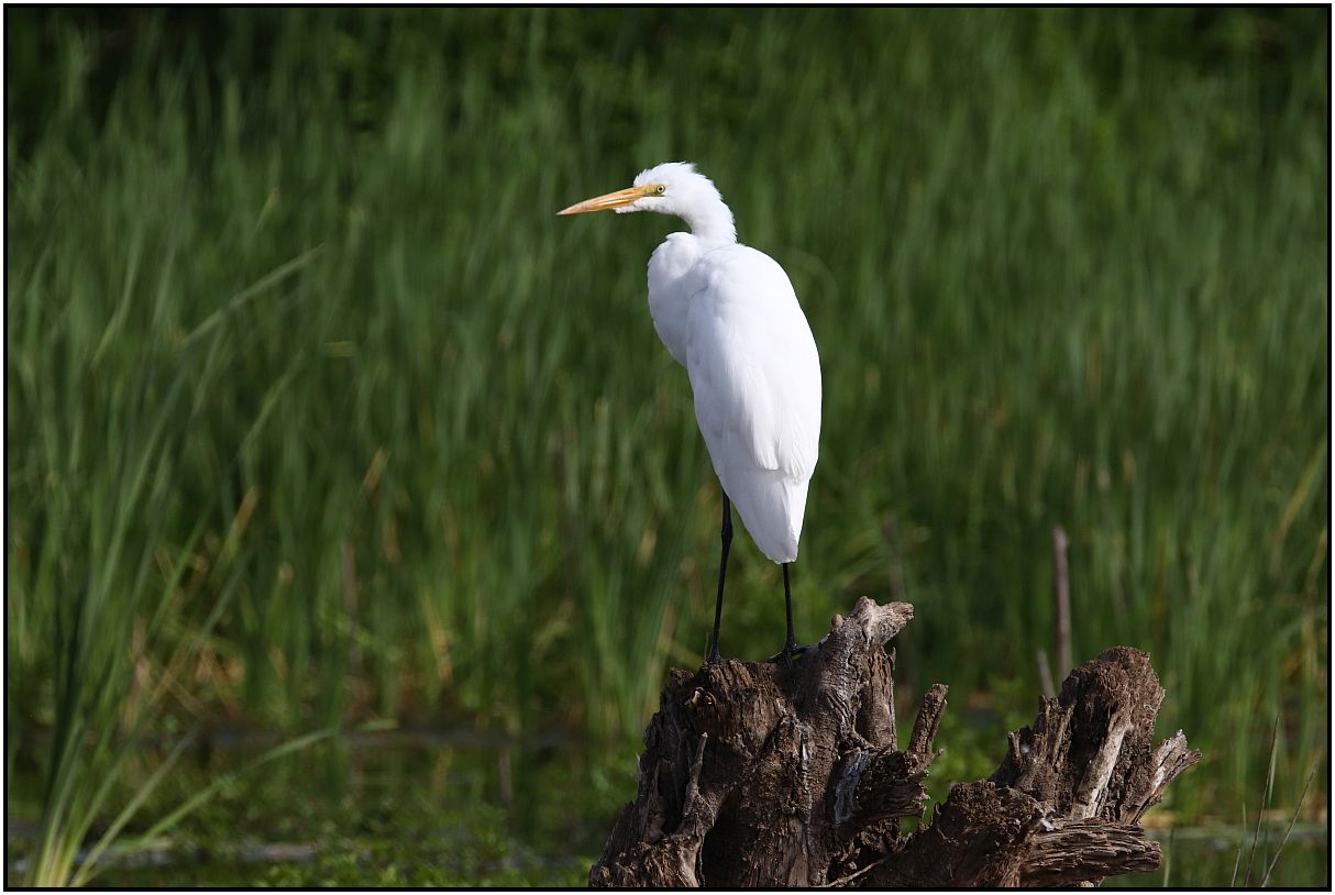 Photo No. 3 - So without a sign prohibiting me, I was able to take this side trail and get closer by navigating myself around some bushes. But I was only able to take one picture that was acceptable to me. The white egret did not stay here very long because maybe I made it nervous as I walked closer. But I did get this one...at least one. 😀