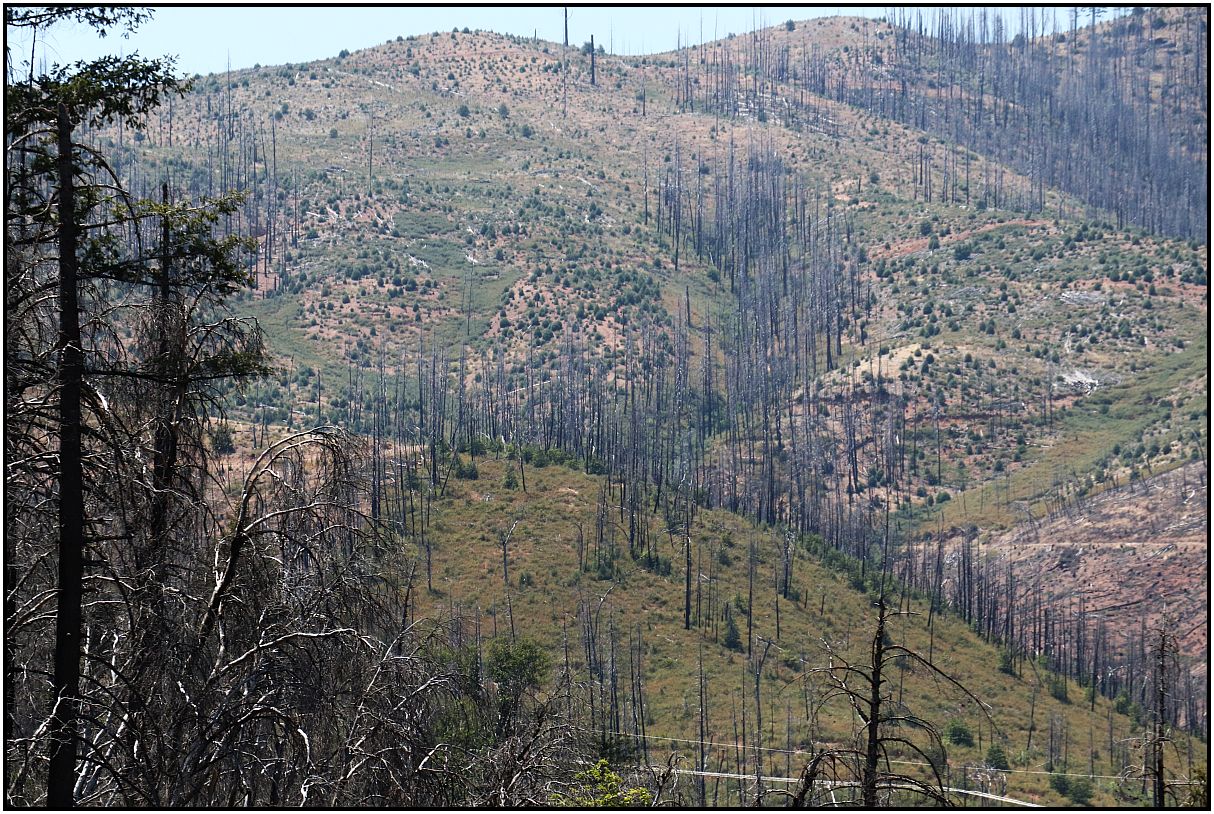 Here's a photo of that terrain somewhere near Grants Pass, Oregon that I took a few weeks ago from a moving car. Unfortunately it was smoky. Plus a lot has changed over the years. We've had many fires that have destroyed forests.