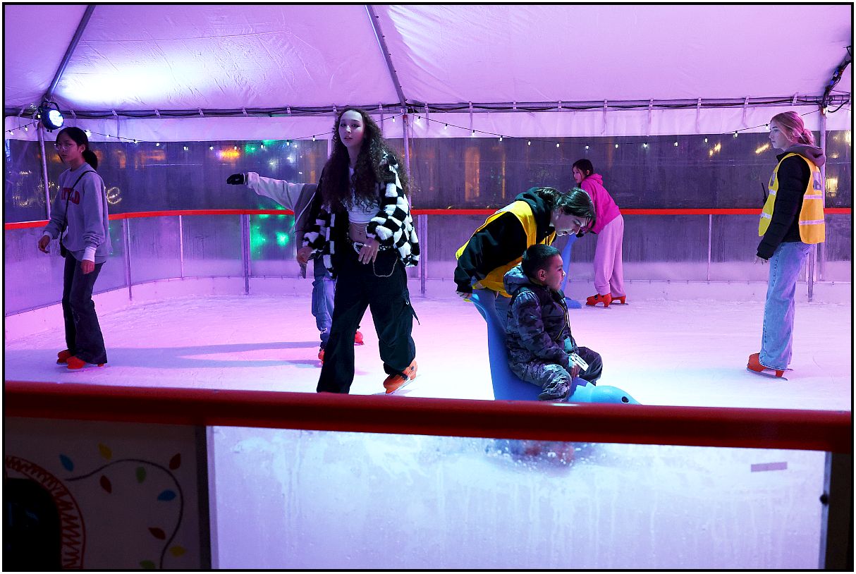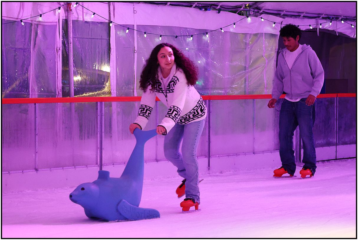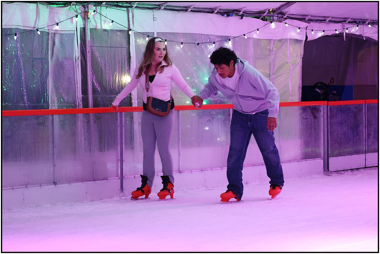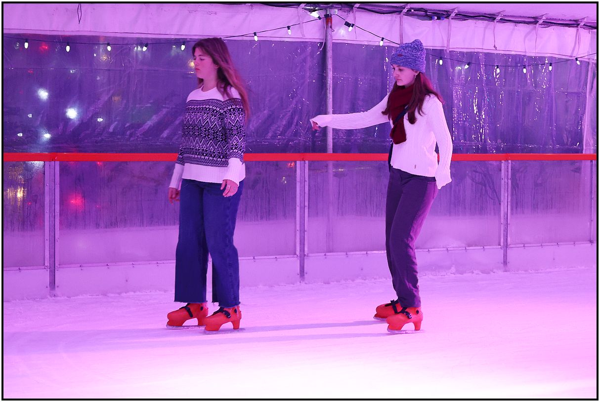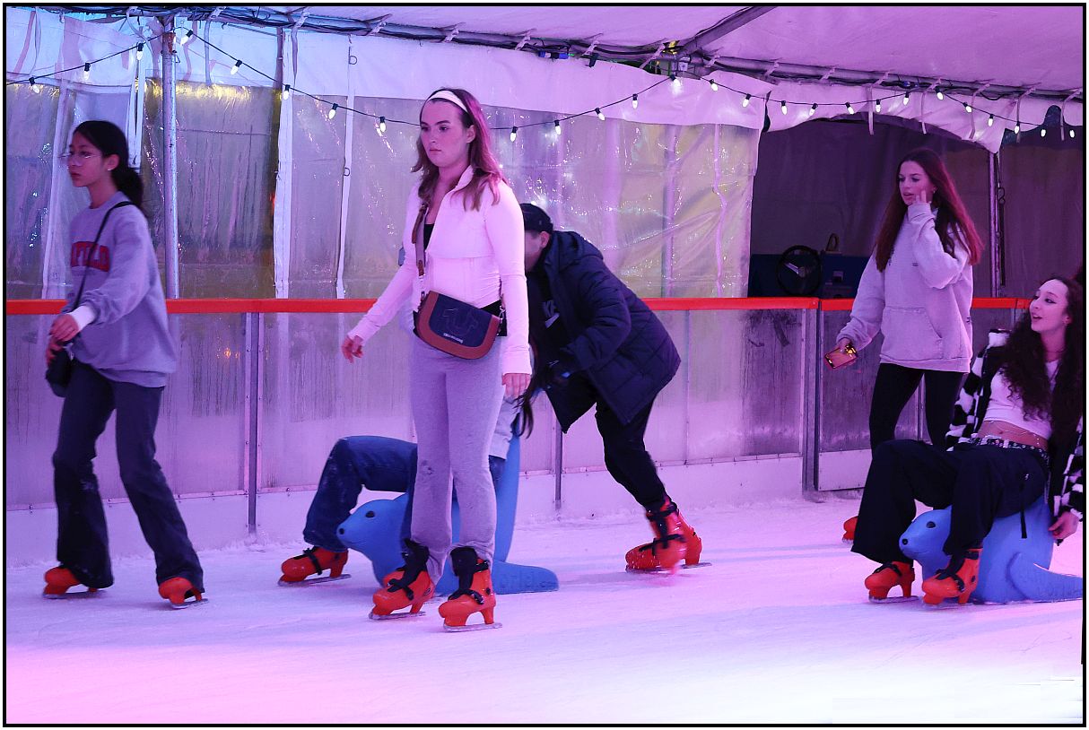 Last week David had showed some skaters. Here's some of my own pictures of skaters. They were skating beneath a temporary tent. The tent is there to protect the ice from melting and to ensure the people don't get wet from the rain. This skating is something that happens for about a month around the Christmas holidays.