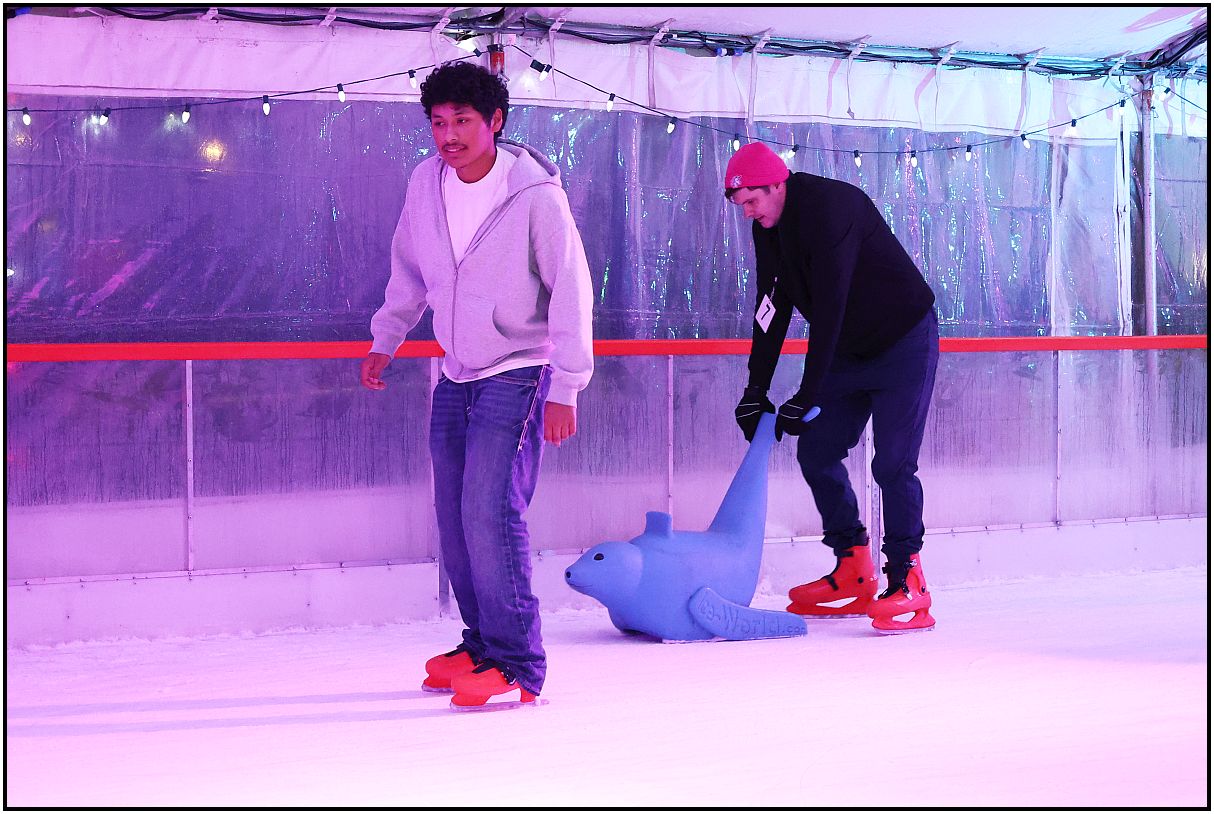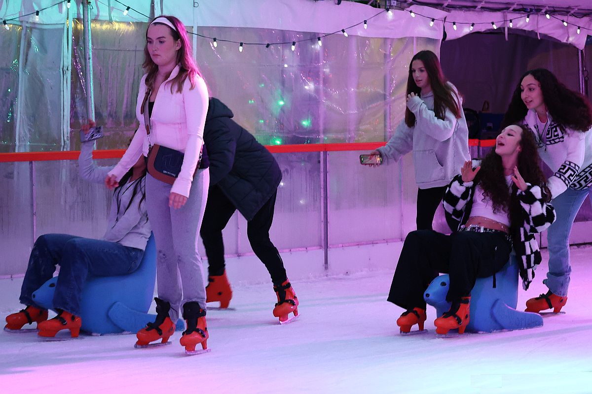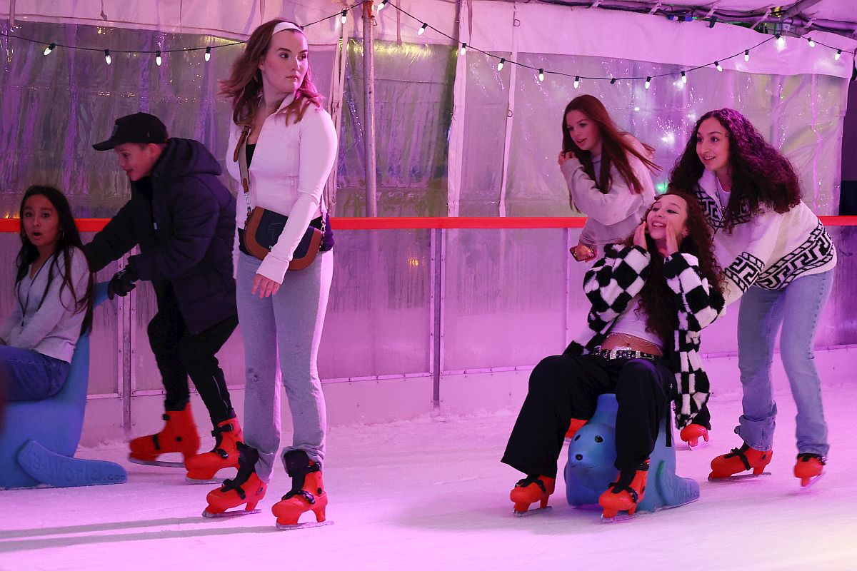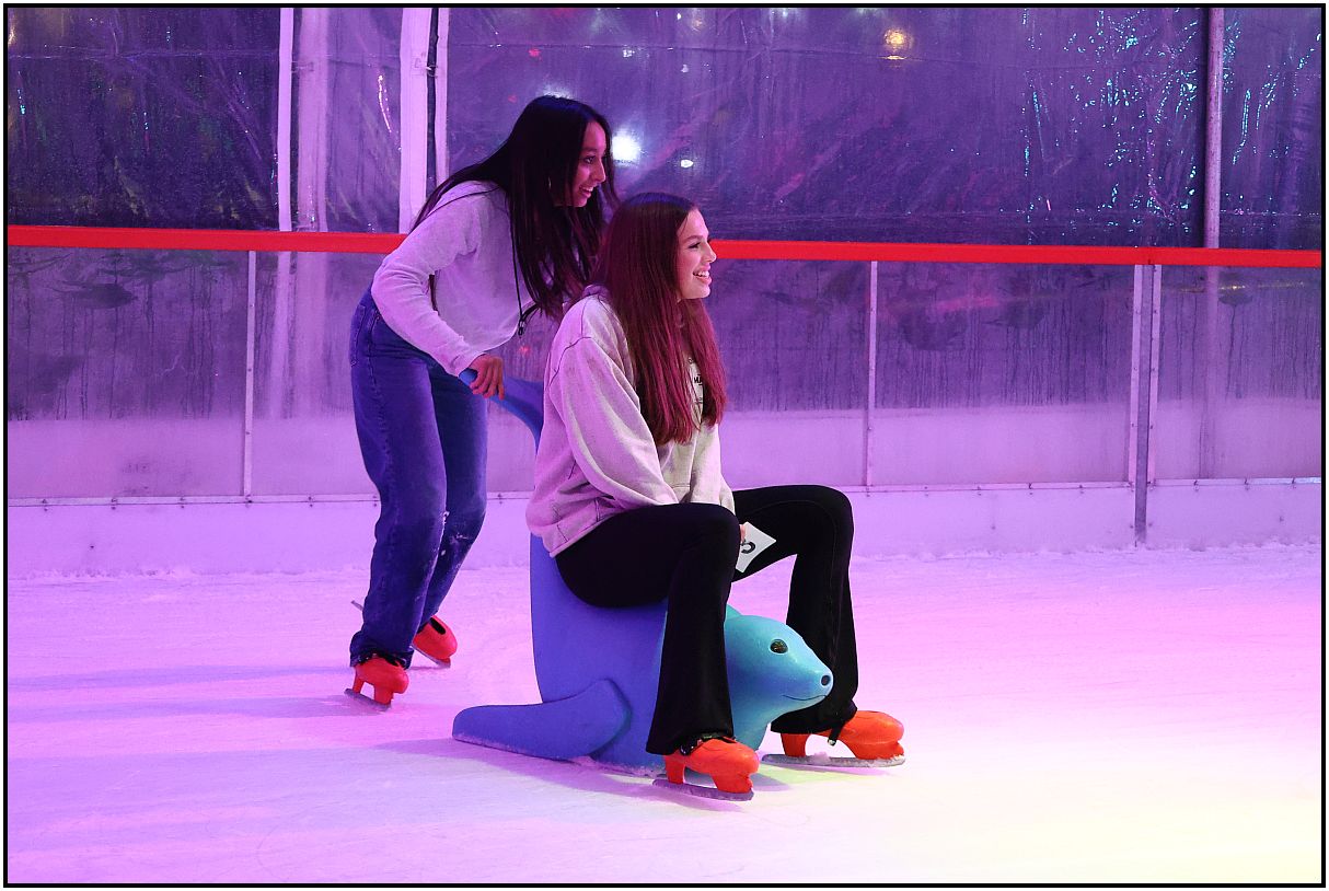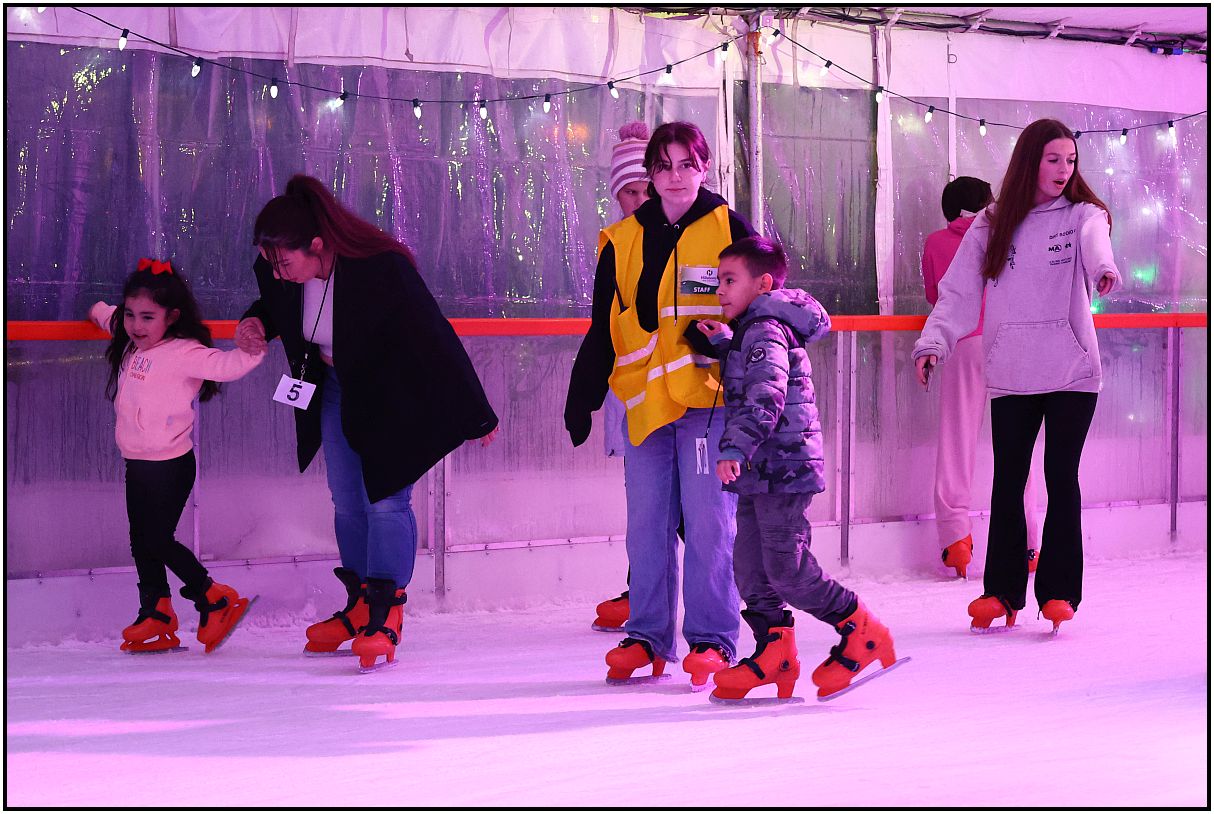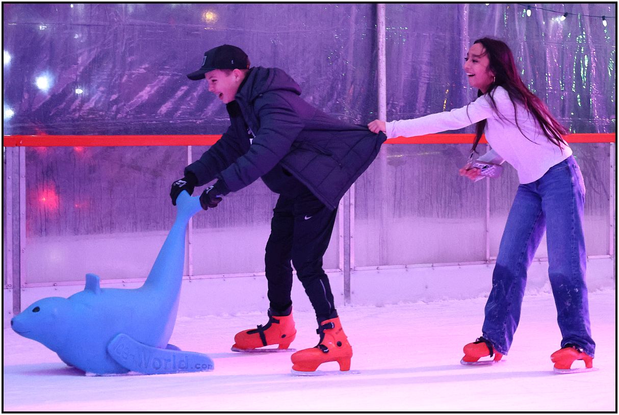 Last week David had showed some skaters. Here's some of my own pictures of skaters. They were skating beneath a temporary tent. The tent is there to protect the ice from melting and to ensure the people don't get wet from the rain. This skating is something that happens for about a month around the Christmas holidays.